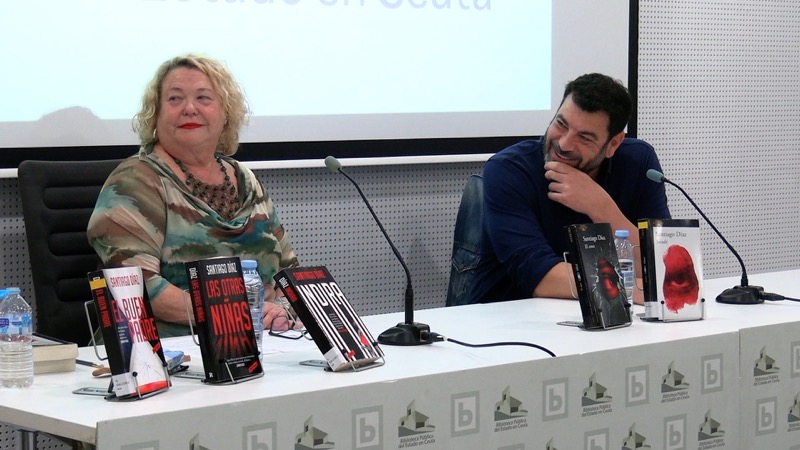 La biblioteca pública Adolfo Suárez de Ceuta se ha llenado de lectores en la tarde de este martes con ganas de encontrarse con Santiago Díaz, un reconocido escritor de novela negra.
