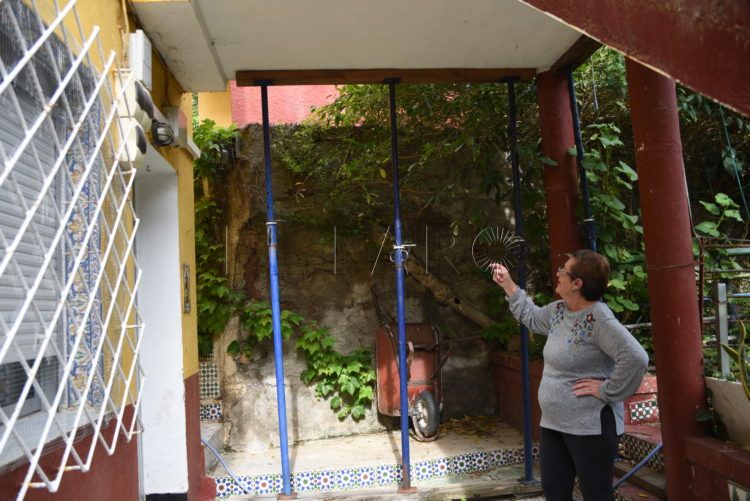 Para colmo, las grietas no son el único martirio de Maribel: paredes dañadas, techos a punto de caerse y los incómodos ruidos que atormentan su día a día. Aclara que son muy frecuentes y que por la noche se hacen notar de forma considerable. “A veces estoy en la cama con mi marido y escuchamos unos ruidos terribles procedentes del cuarto de baño”, recalca mientras afirma que dormir con miedo “es algo normal ya para nosotros”. Al acudir al patio, las circunstancias no mejoran. “Es que se me va a caer la casa encima y el Ayuntamiento no hace nada”, insiste.