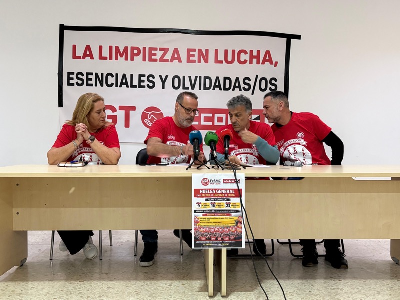 Lo han hecho a través de una rueda de prensa llevada a cabo a las 9:30 horas en el Salón de Actos del Edificio Sindical, que ha contado también con la participación de Gema Cajal, delegada sindical de CCOO en el sector, y Abdelhamid Mohamed, enlace sindical de UGT y responsable de limpieza.
