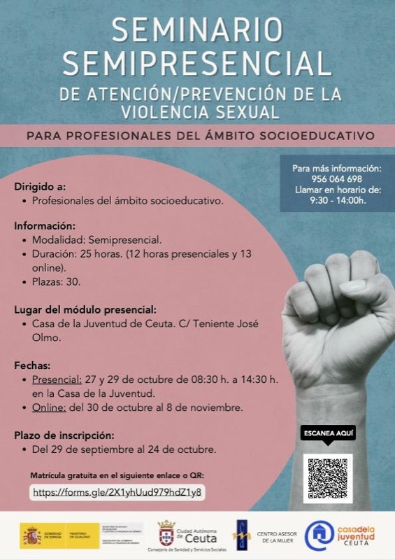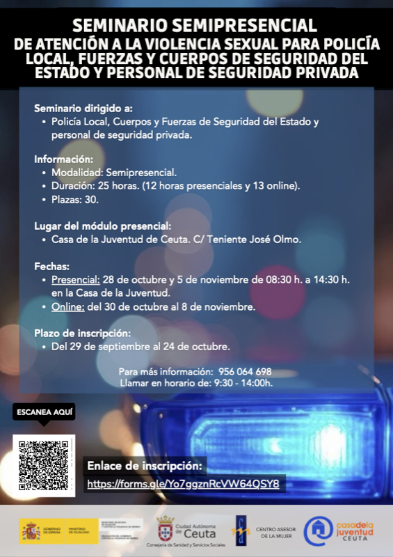 Estos seminarios están organizados por el Centro Asesor de le Mujer, dependiente de la Consejería de Sanidad y Servicios Sociales, y están financiados por los fondos ASI del Ministerio de Igualdad, y suponen una de las maneras de reforzar el compromiso del Ayuntamiento de Ceuta contra la violencia sexual.