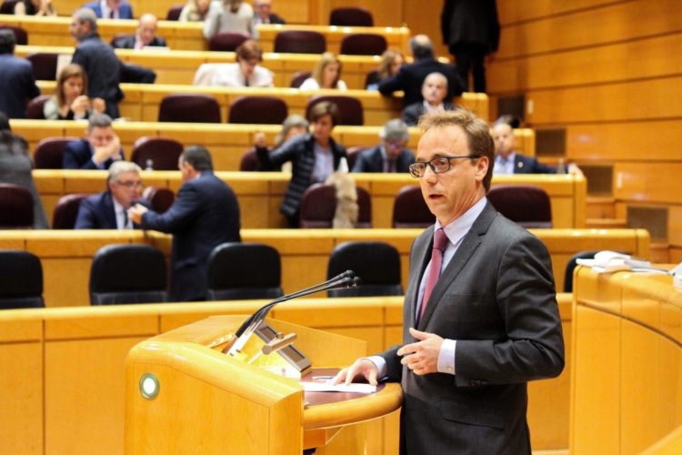 El senador ha aprovechado la ocasión para preguntar a la bancada socialista cómo piensa el Gobierno garantizar que los bancos no repercutan el impuesto a los ciudadanos.