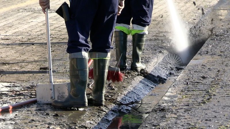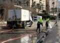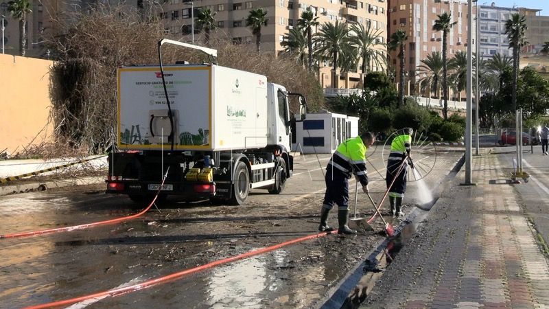 Con mangueras de agua a presión, palas y material de limpieza, los trabajadores han iniciado las labores de saneamiento y desatasco de los canales, retirando ramas, barro y otros restos arrastrados por la lluvia.