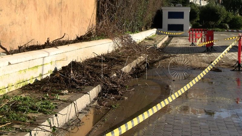 El fuerte viento y las intensas lluvias convirtieron la pista en una auténtica piscina. Las ramas, el barro y otros restos arrastrados por el temporal bloquearon las alcantarillas, impidiendo que el agua pudiera drenarse con normalidad.