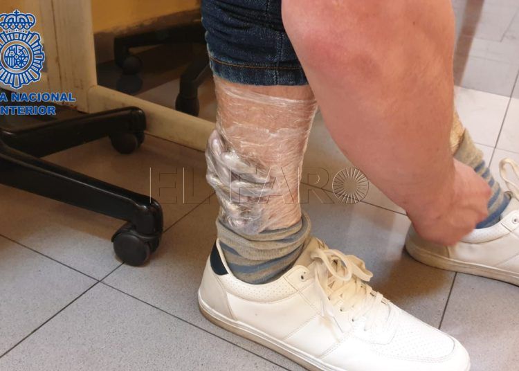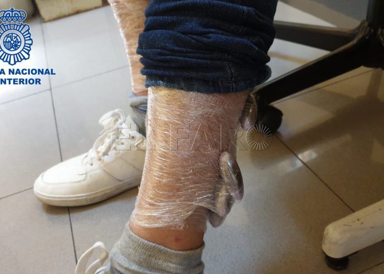 Un sevillano intenta embarcar con parte de su cuerpo forrado de hachís