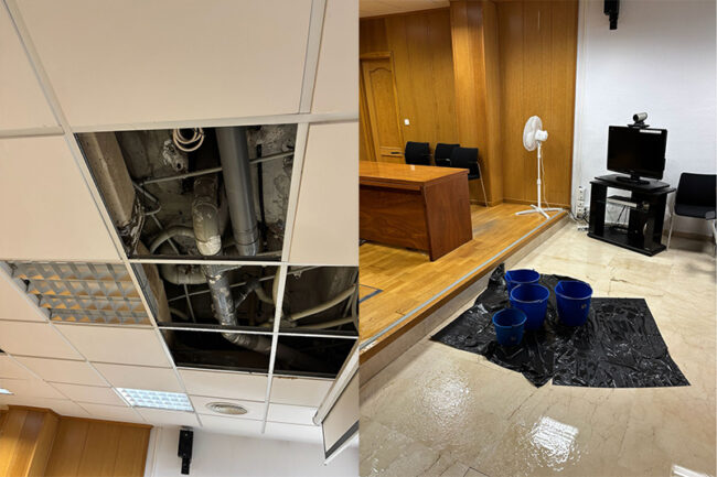 A los juicios suspendidos en esta segunda planta de los juzgados se suma la situación derivada del problema de las filtraciones de la cubierta, lo que se ha traducido en inundaciones e incluso daños de gravedad en zonas que ni siquiera habían sido inauguradas.