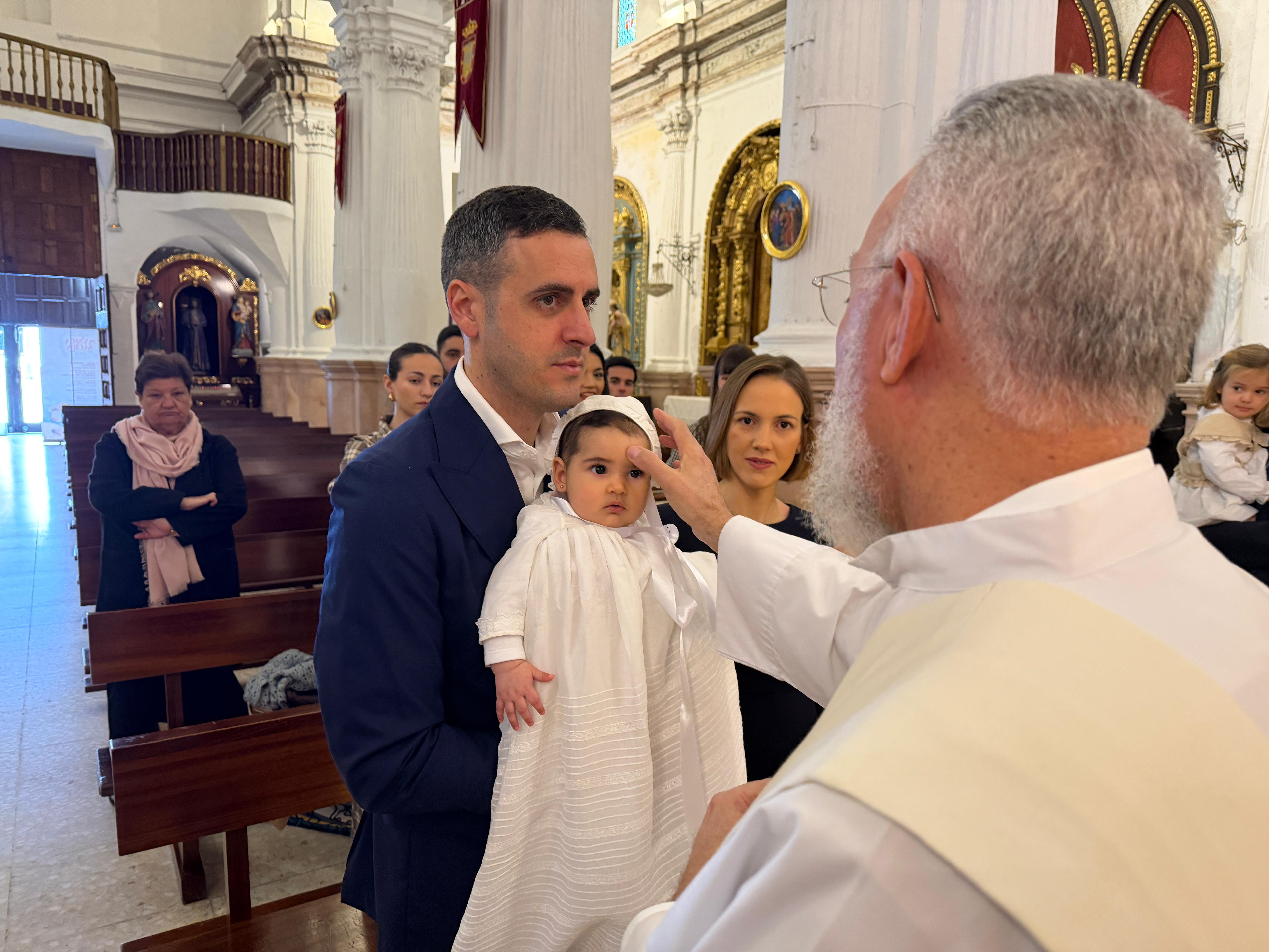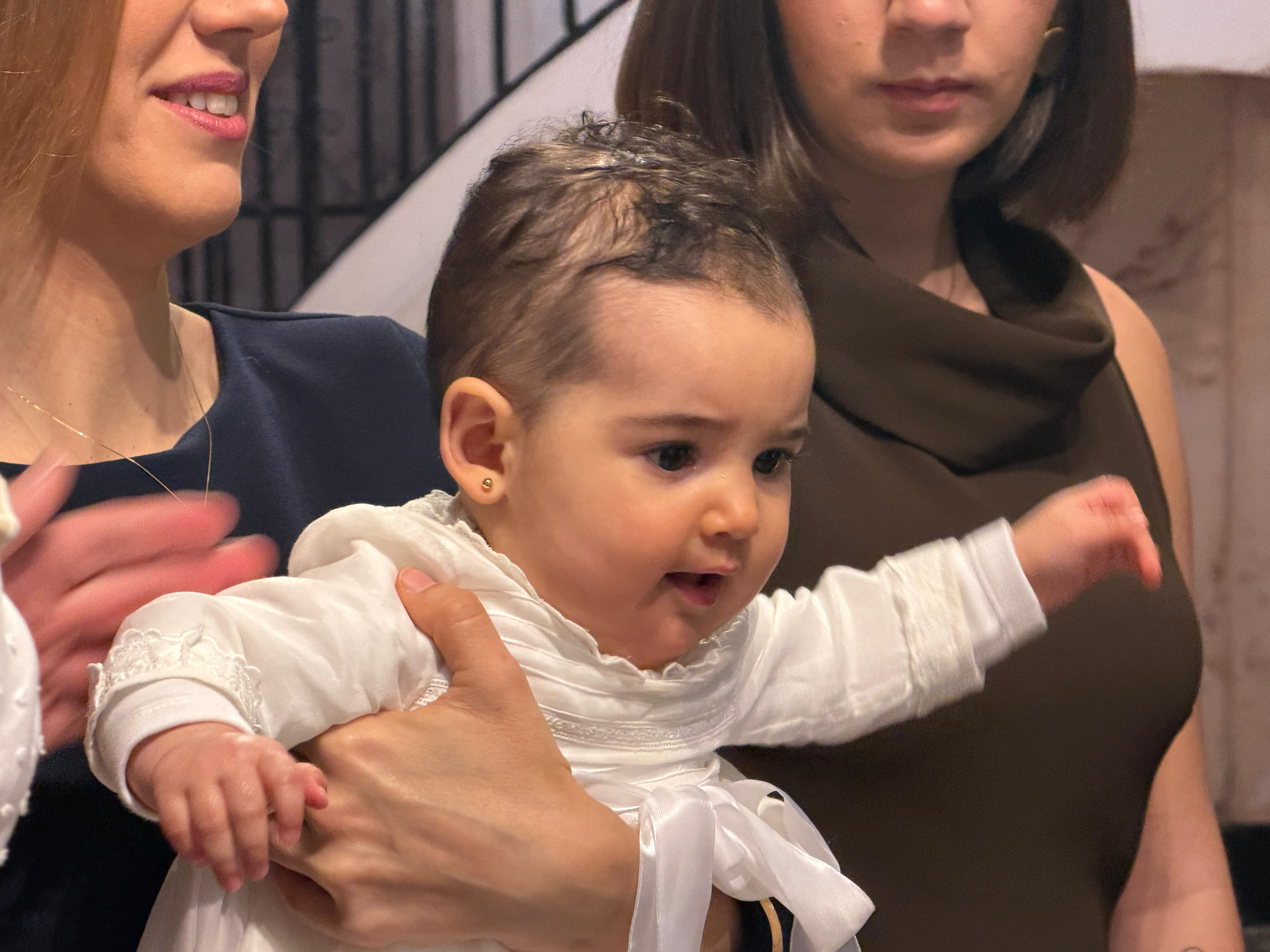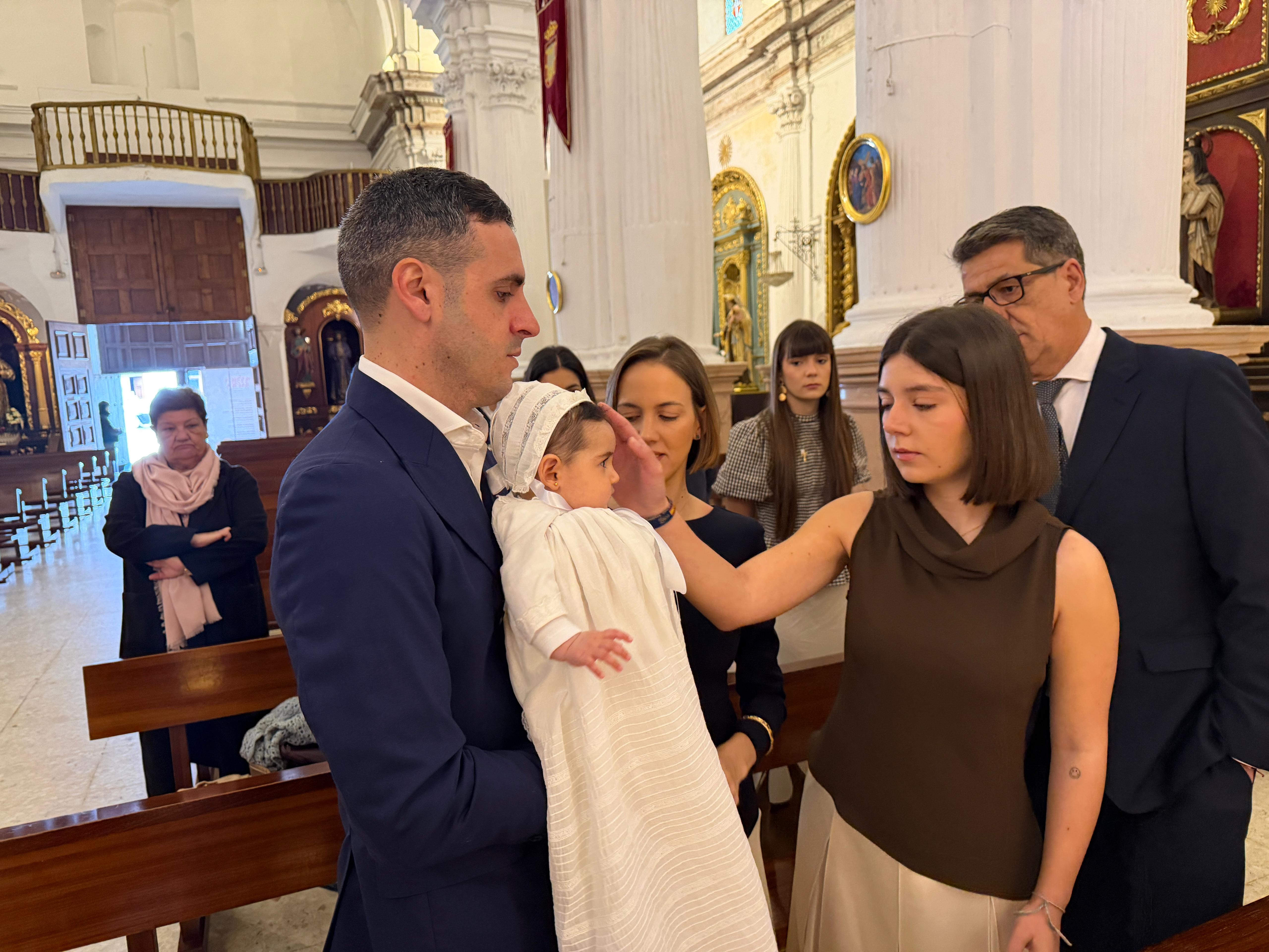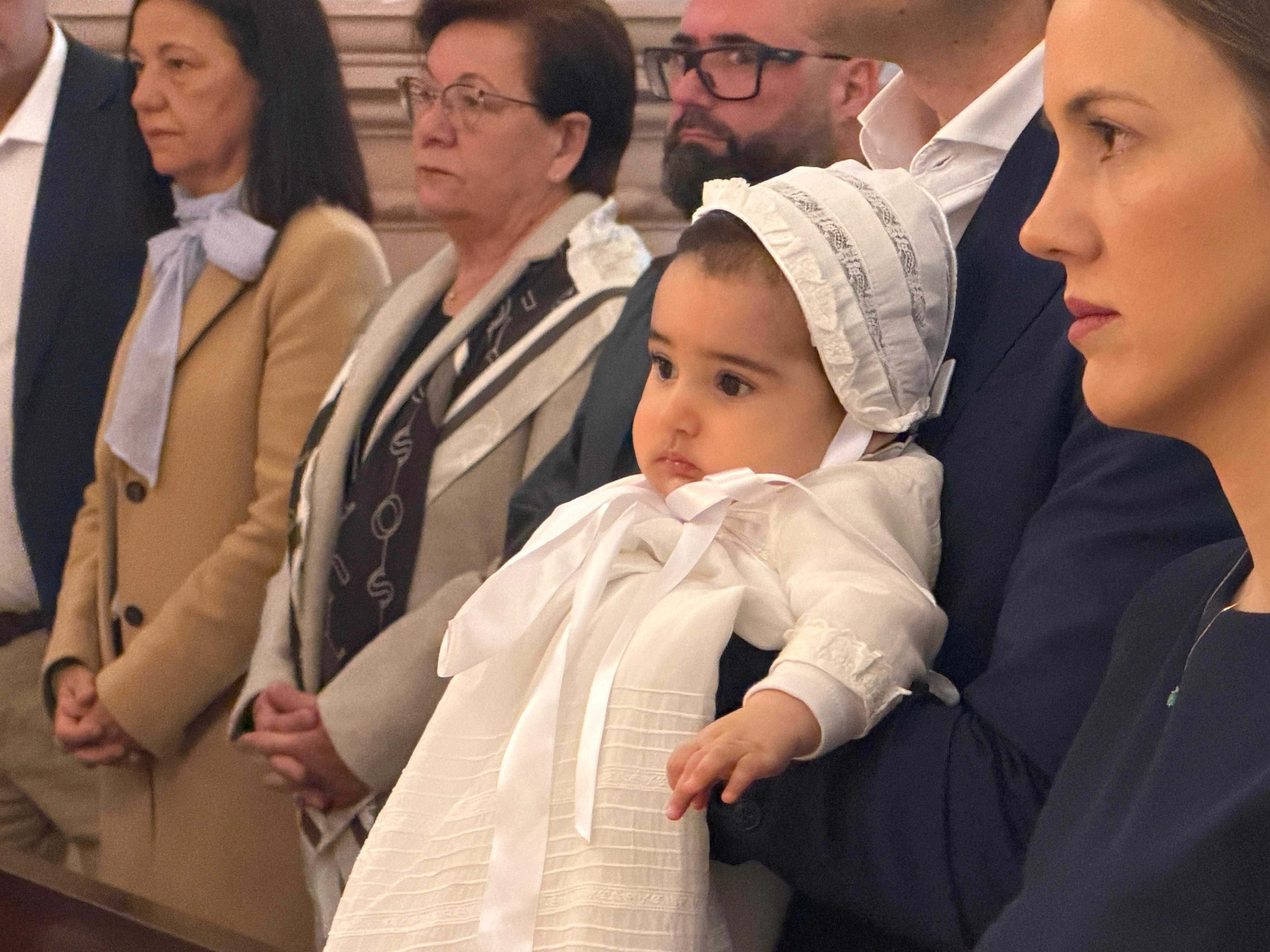 La pequeña ha sido bautizada en la mañana de este sábado, estando acompañada de sus familiares y amigos