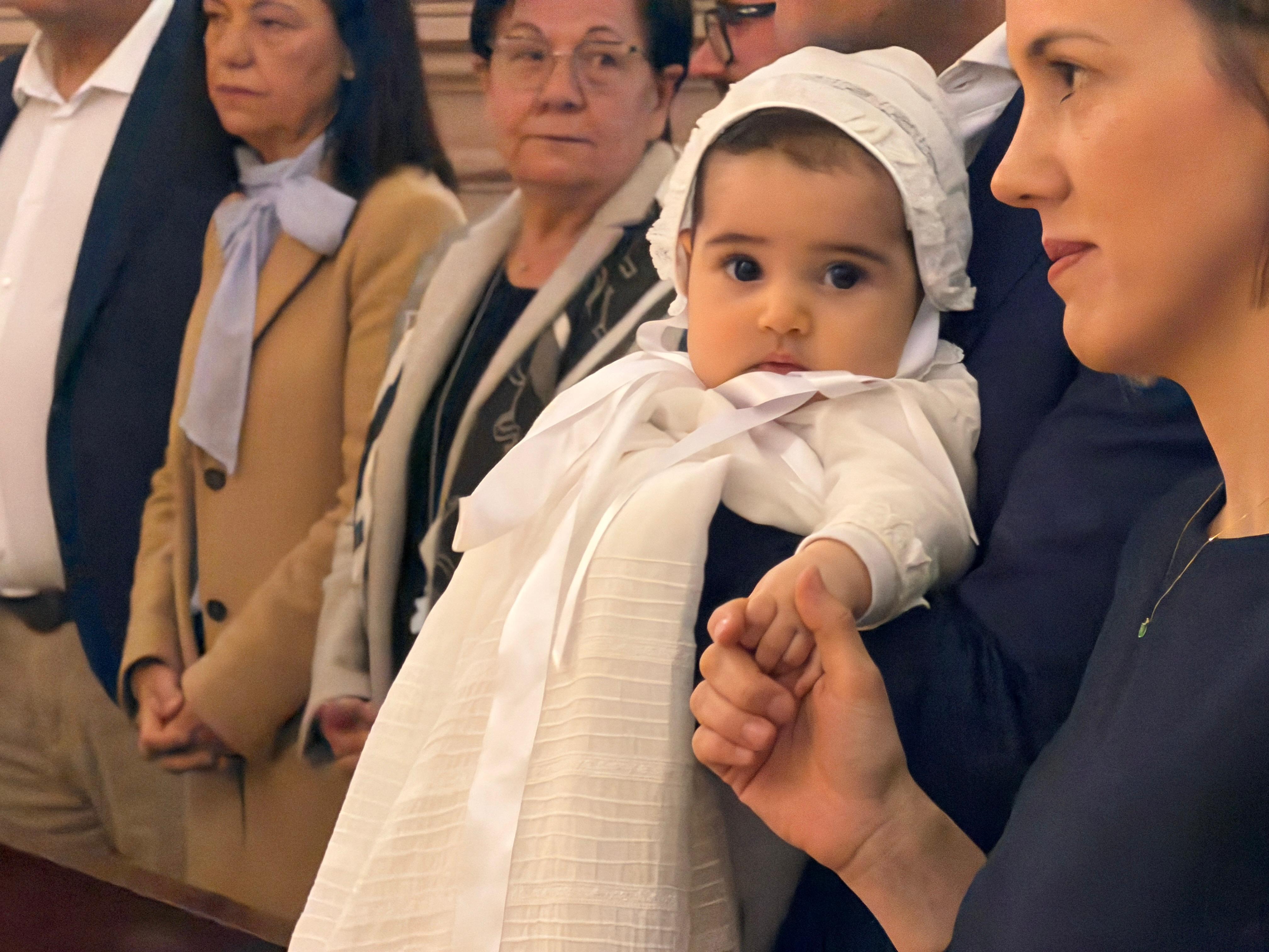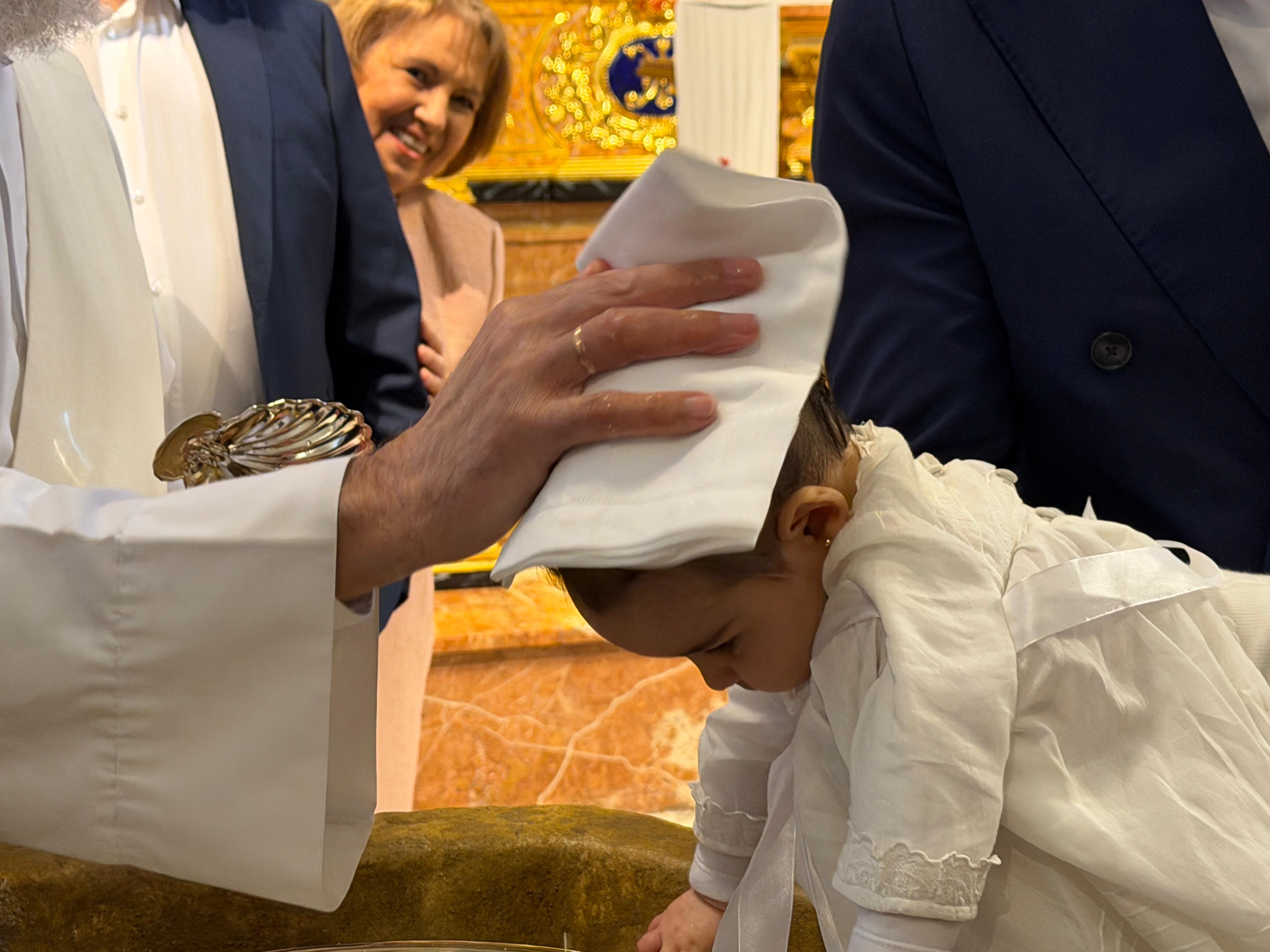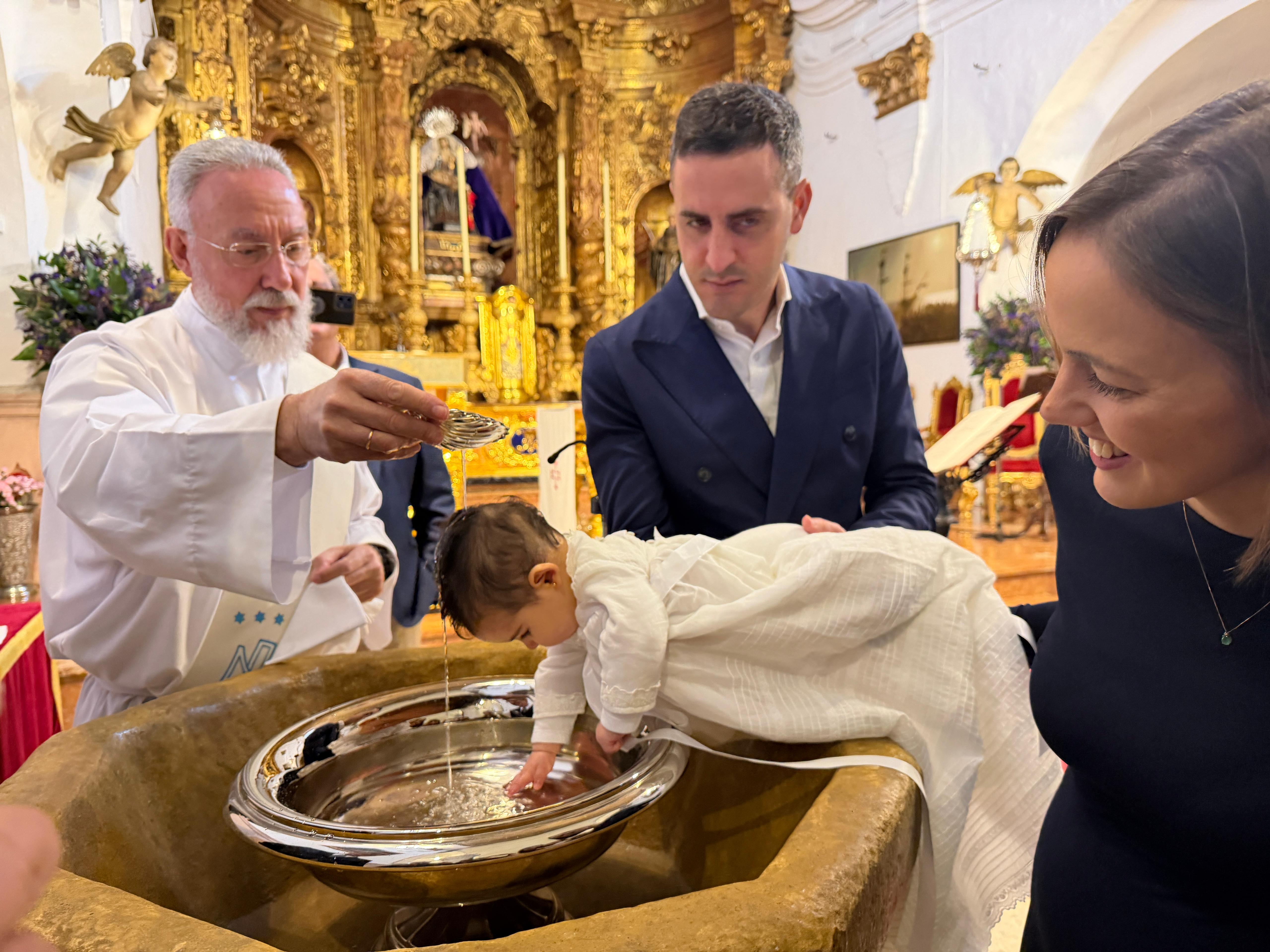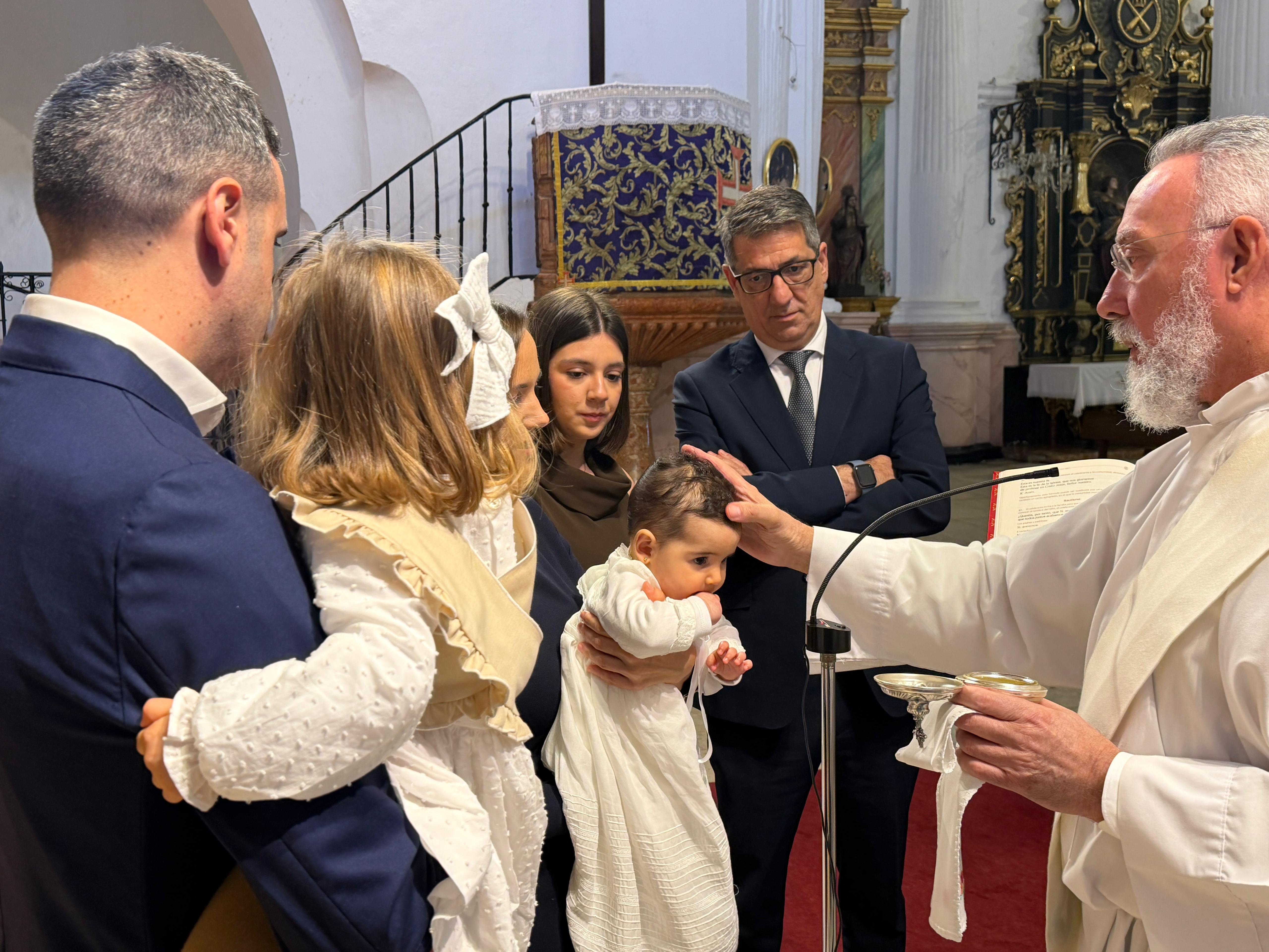 La pequeña ha sido bautizada en la mañana de este sábado, estando acompañada de sus familiares y amigos