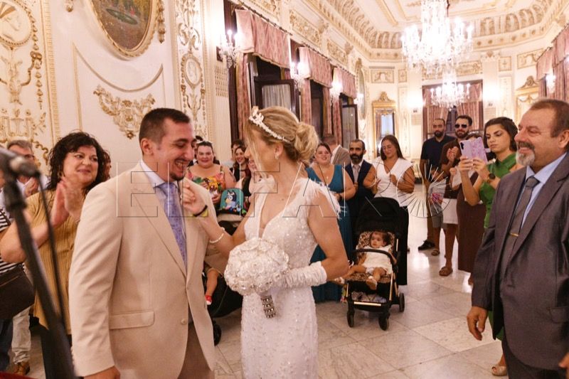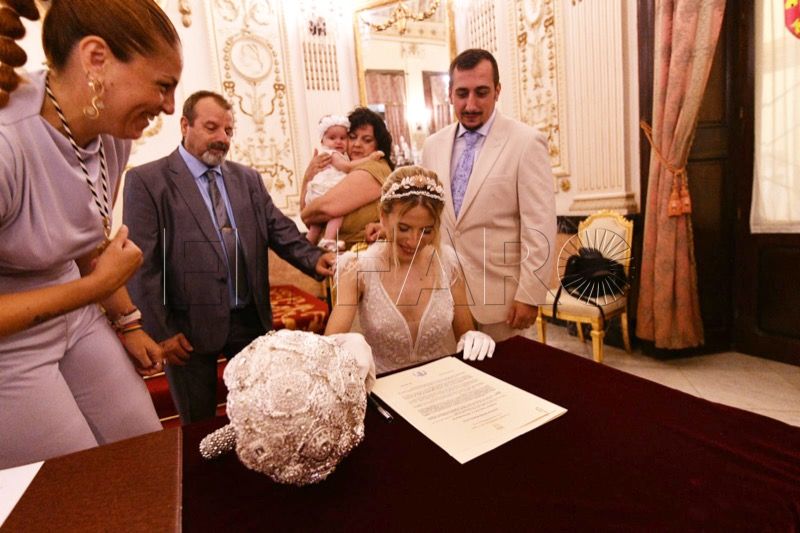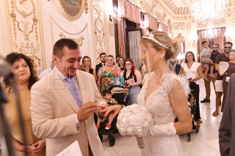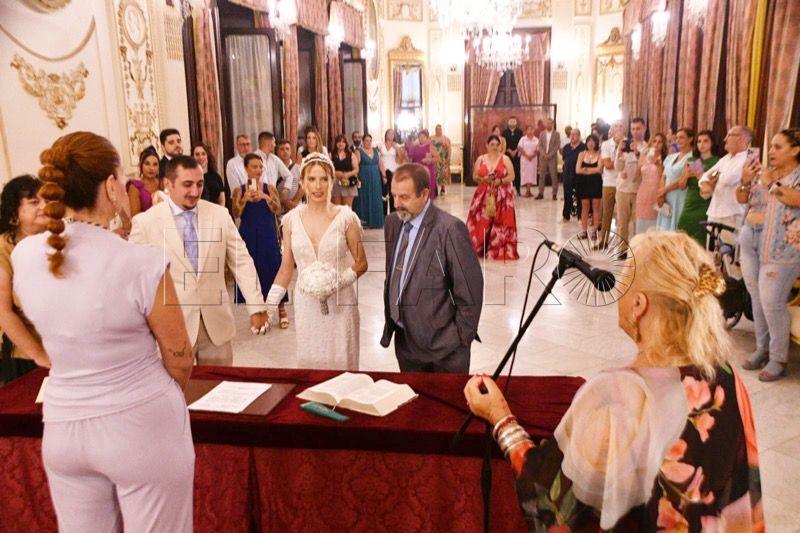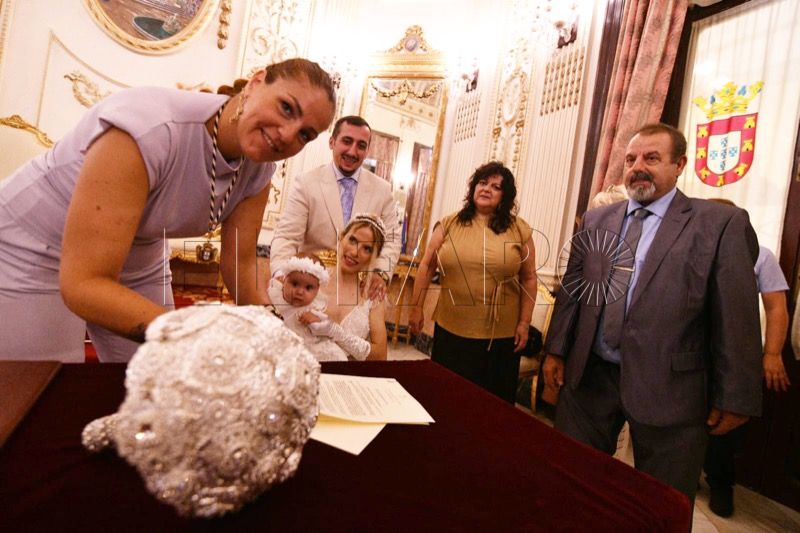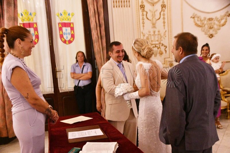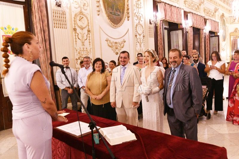 El Salón del Trono del Ayuntamiento ha acogido en la tarde de este sábado en Ceuta la boda entre Adrián y Laura.