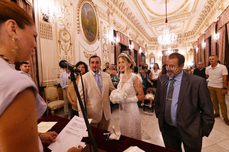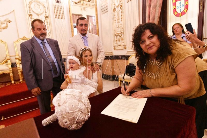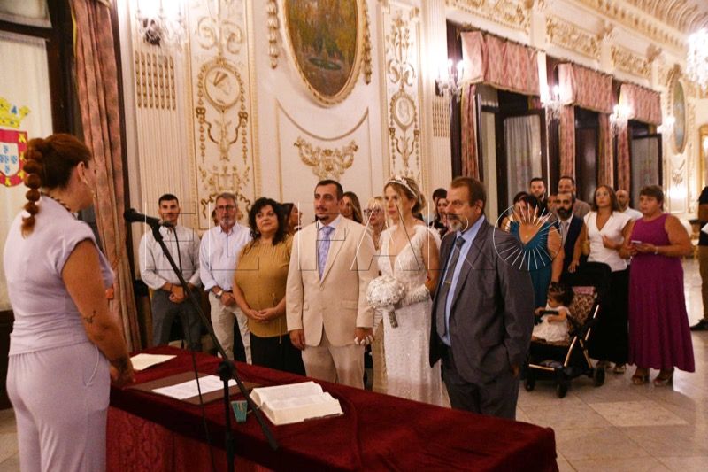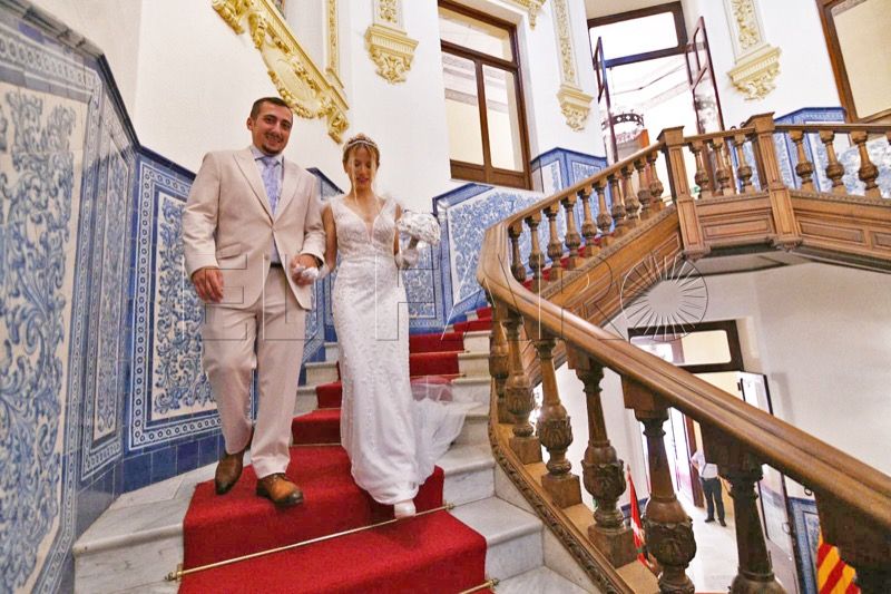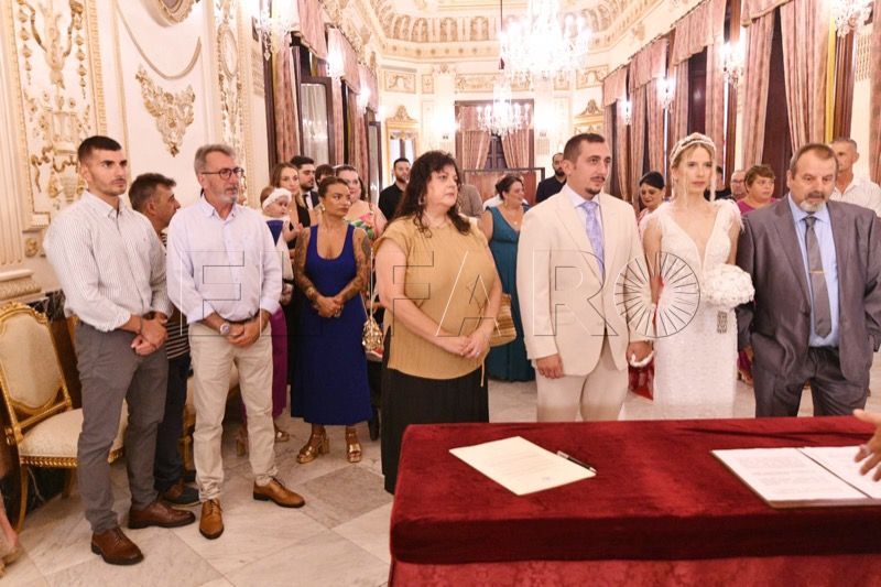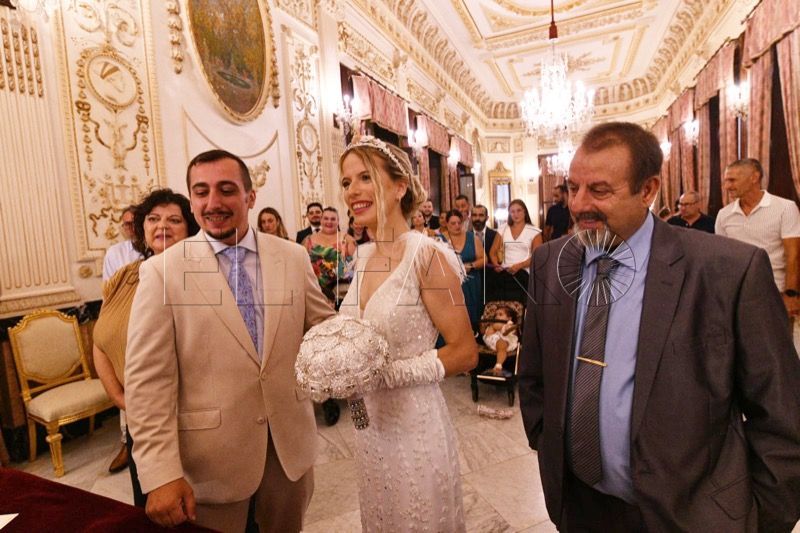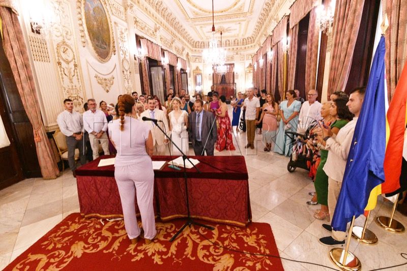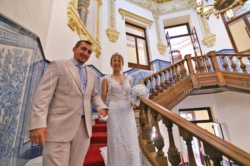 El Salón del Trono del Ayuntamiento ha acogido en la tarde de este sábado en Ceuta la boda entre Adrián y Laura.