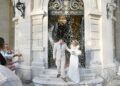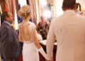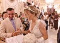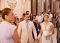 Ambos iban guapísimos, vestidos de blanco, y, además, la novia, Laura, llevaba un traje precioso y un ramo de flores muy singular que ha llamado la atención de todos.