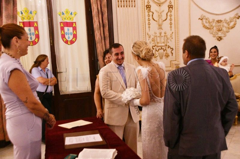 El enlace ha tenido lugar a las 19:00 horas y la pareja, feliz, se ha dado el sí quiero después de que los casara la diputada de Ceuta Ya!, Julia Ferreras.