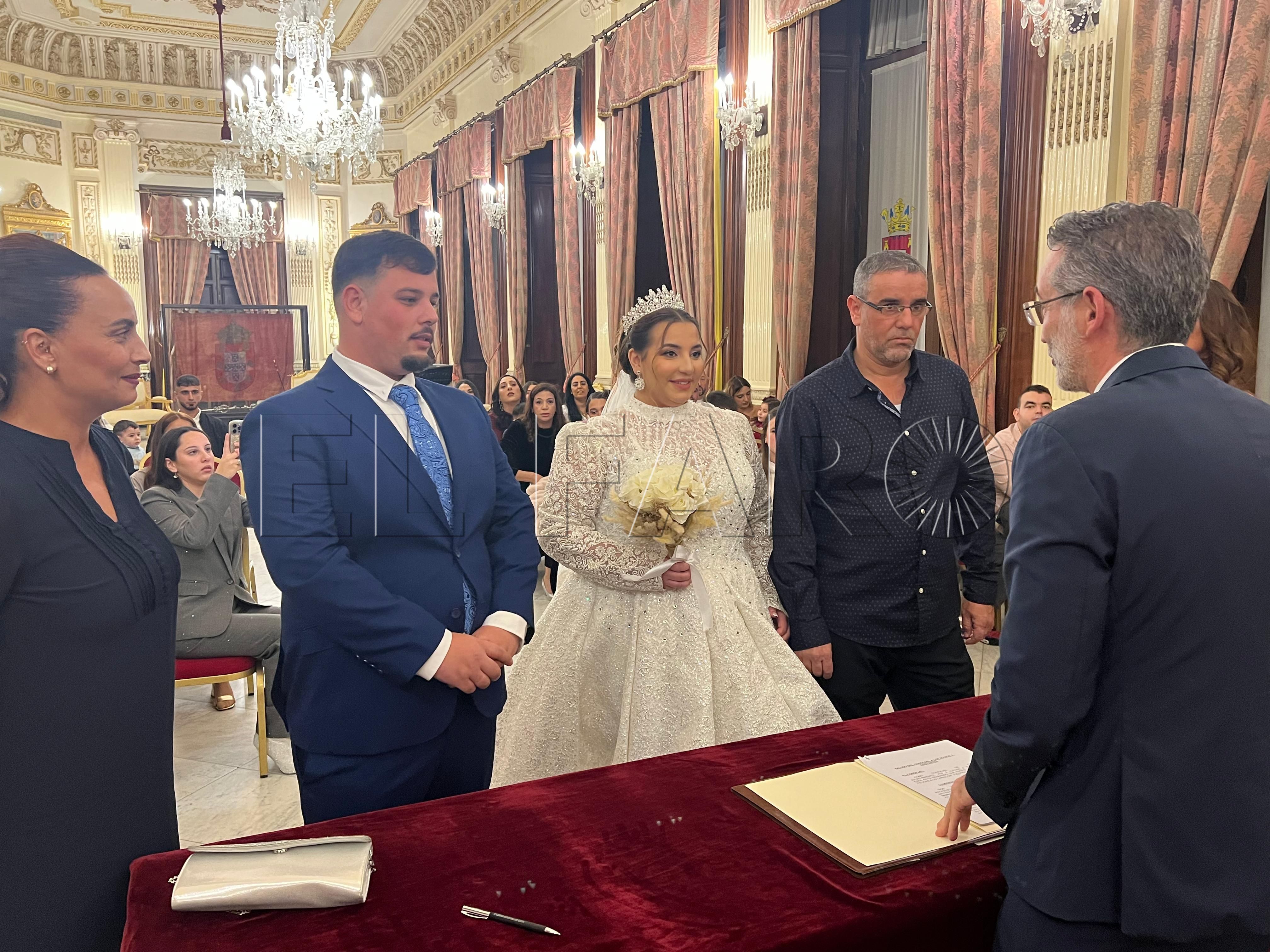 El Salón del Trono del Ayuntamiento ha acogido este sábado en Ceuta la boda de Insaf y Yusef. Les ha casado el diputado del PSOE, Sebastián Guerrero.