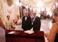 Ambos sellan así el amor que se tienen con esta boda que se ha celebrado en el Salón del Trono contando con la presencia de todos los que les quieren.