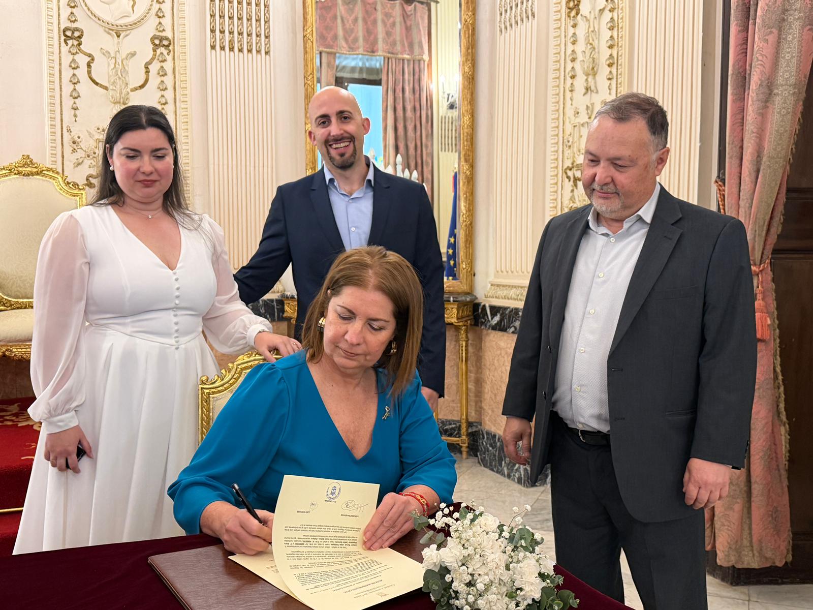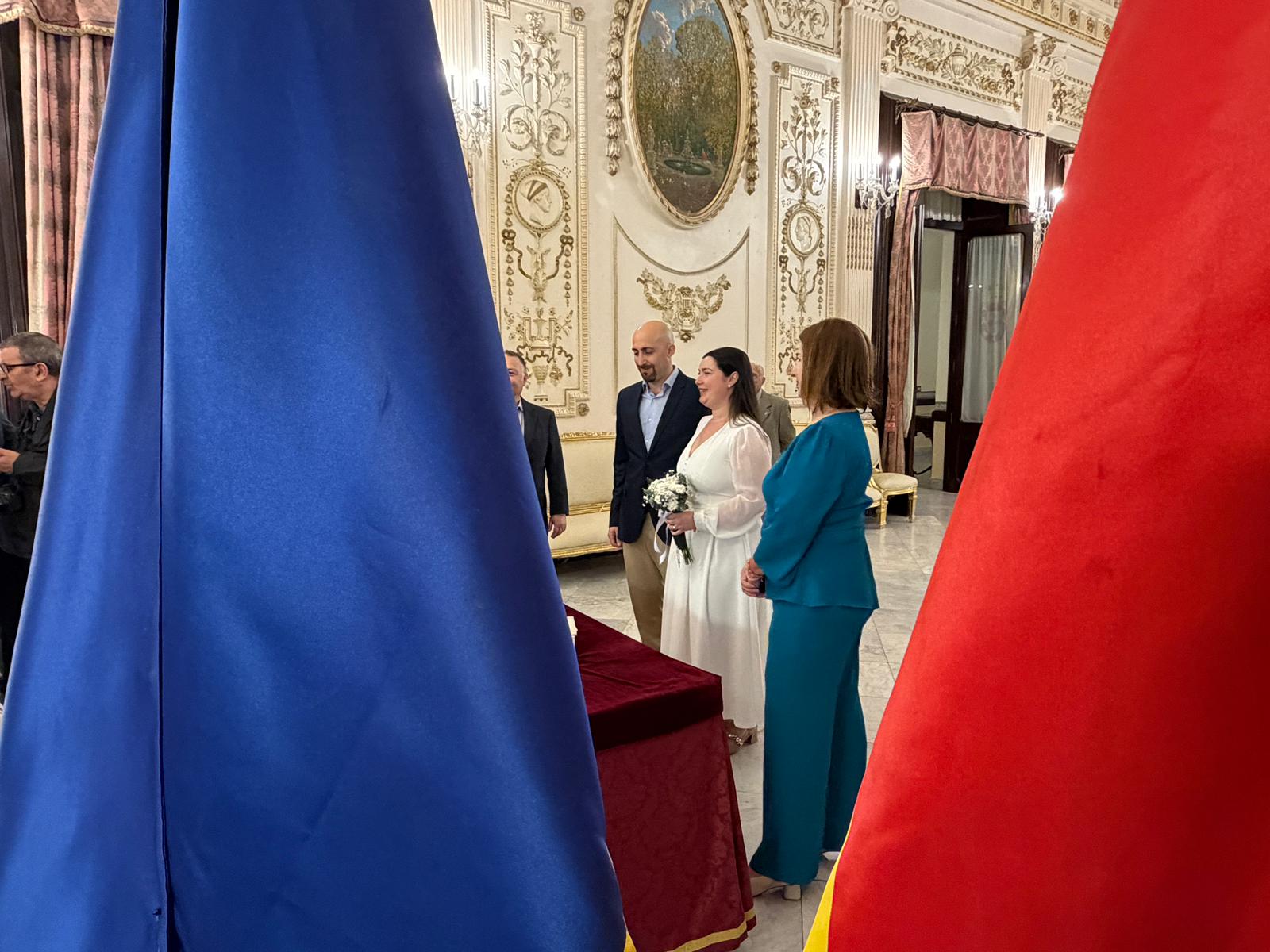 La pareja se ha casado este sábado en el Palacio de la Asamblea, rodeada de sus seres queridos