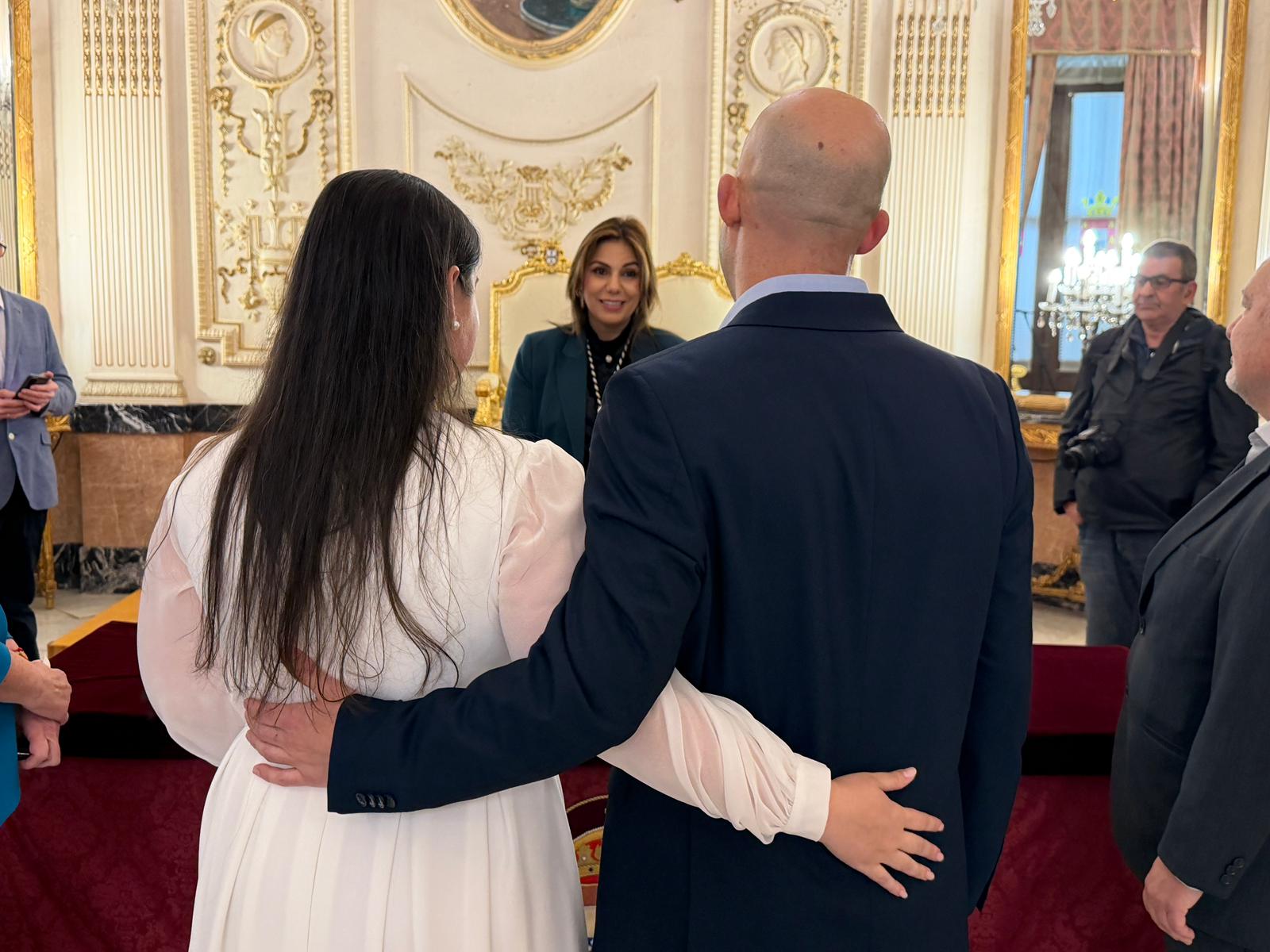 El Salón del Trono del Ayuntamiento de Ceuta ha acogido este sábado la boda de Juan Carlos y Sara. Les ha casado la consejera de Sanidad y Servicios Sociales, Nabila Benzina.