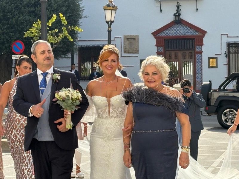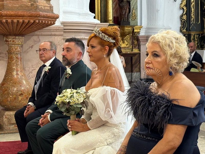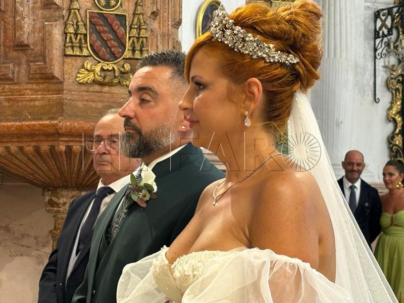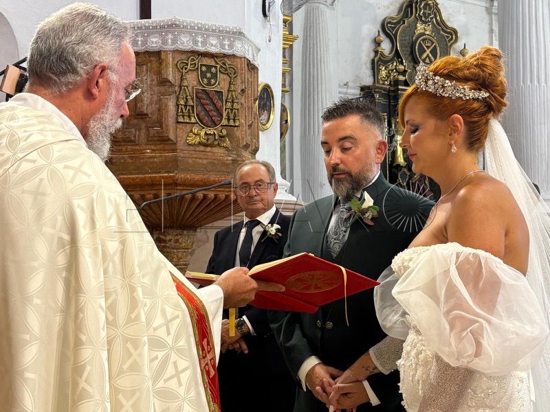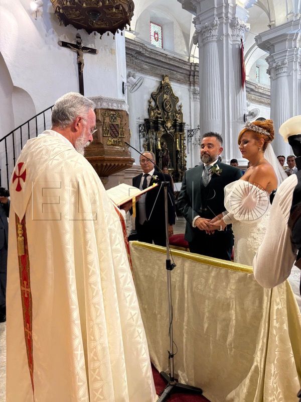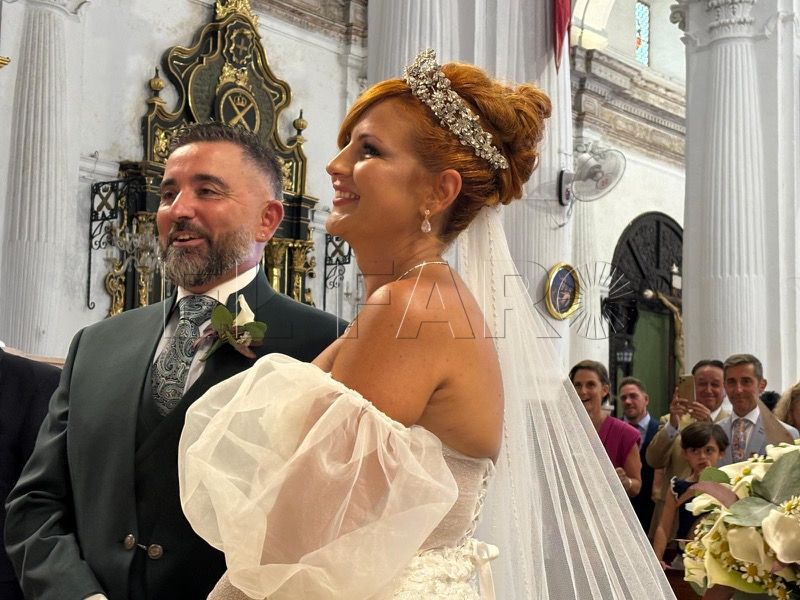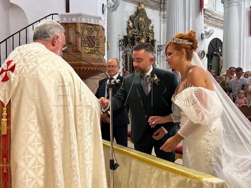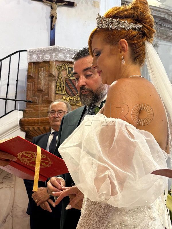 La novia, preciosa, ha llegado en un vehículo a la plaza de África, en donde ha sido acompañada hasta el altar, donde esperaba, emocionado, David.