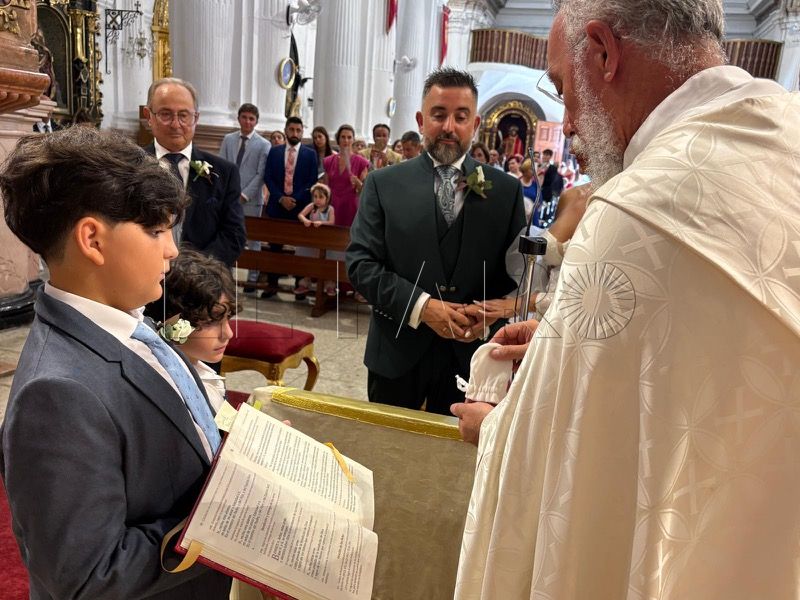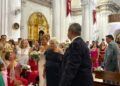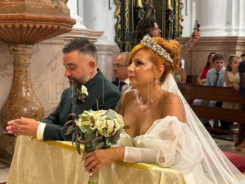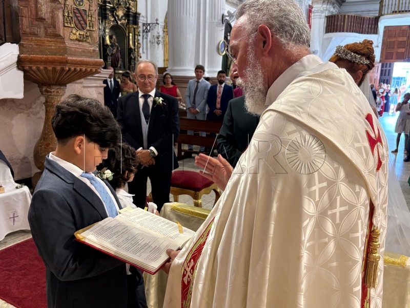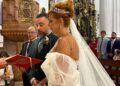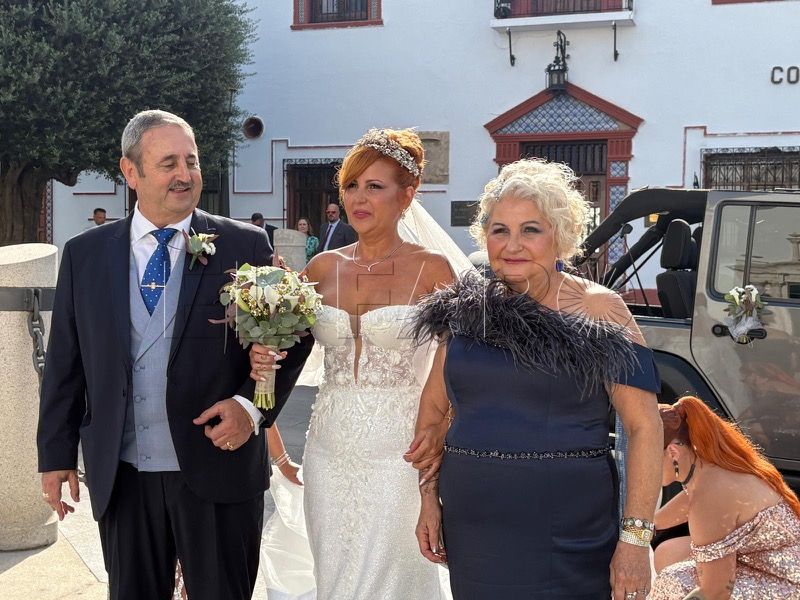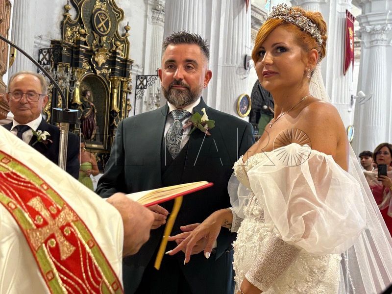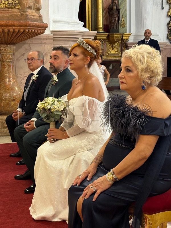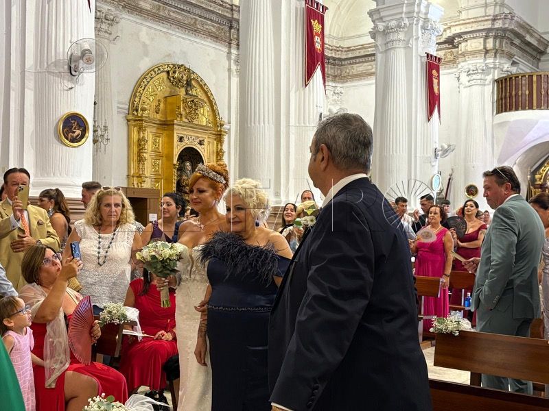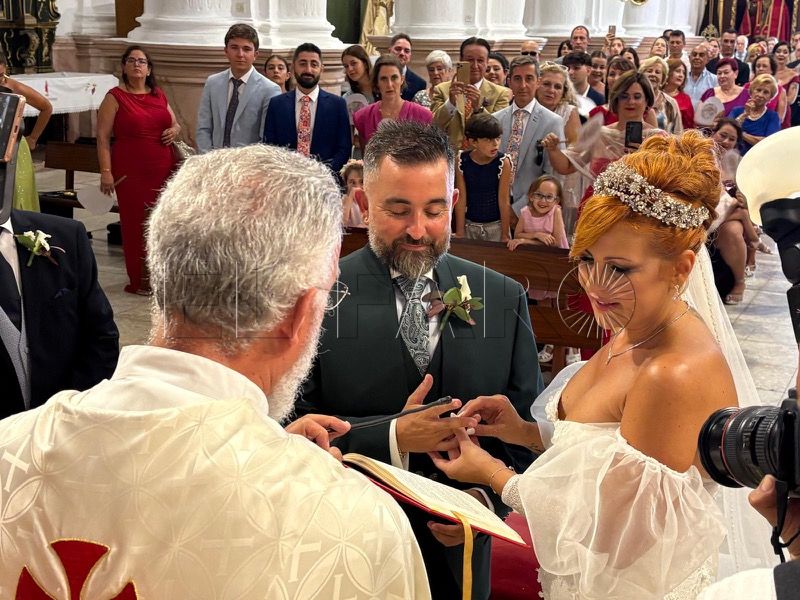 La novia, preciosa, ha llegado en un vehículo a la plaza de África, en donde ha sido acompañada hasta el altar, donde esperaba, emocionado, David.