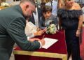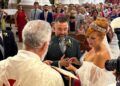 Felices, la pareja ha acudido para sellar su amor con esta boda, contando con la asistencia de sus familiares y amigos.