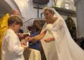 La novia ha estado radiante y la felicidad del novio ha sido evidente al encontrarse frente a frente y arropados con la bendición de la Patrona de Ceuta.