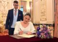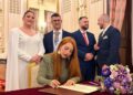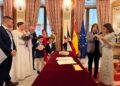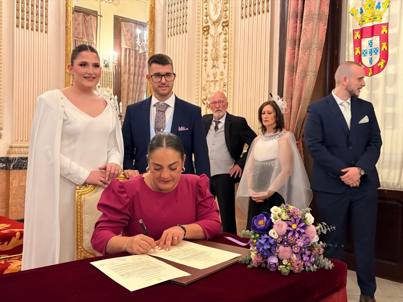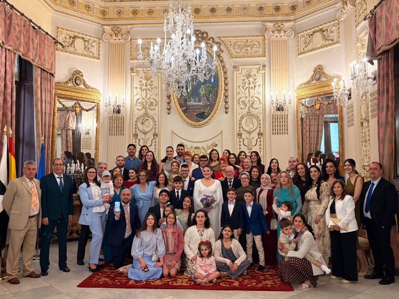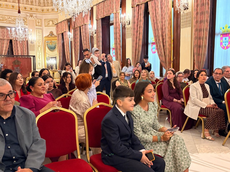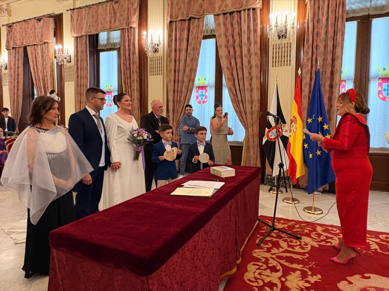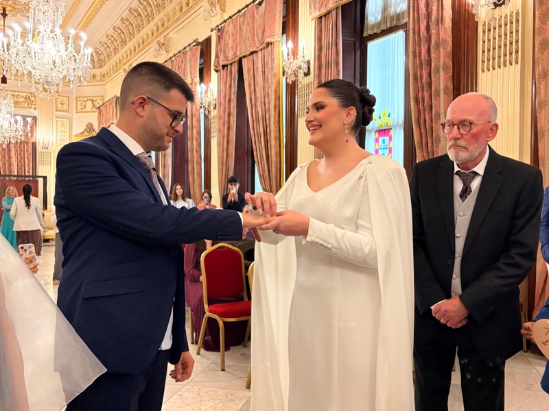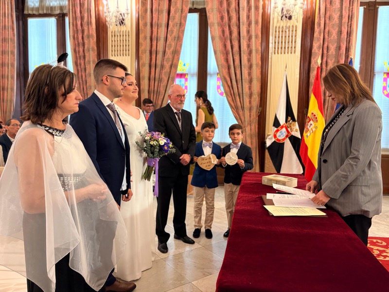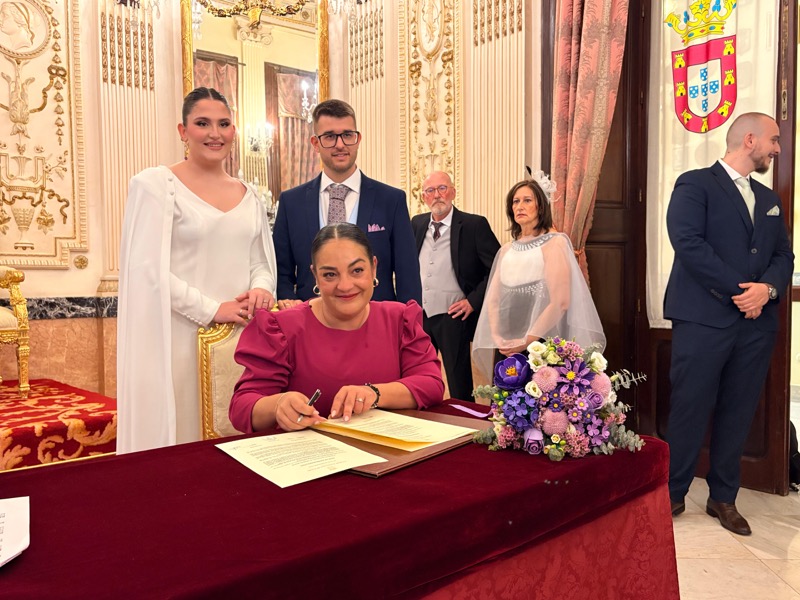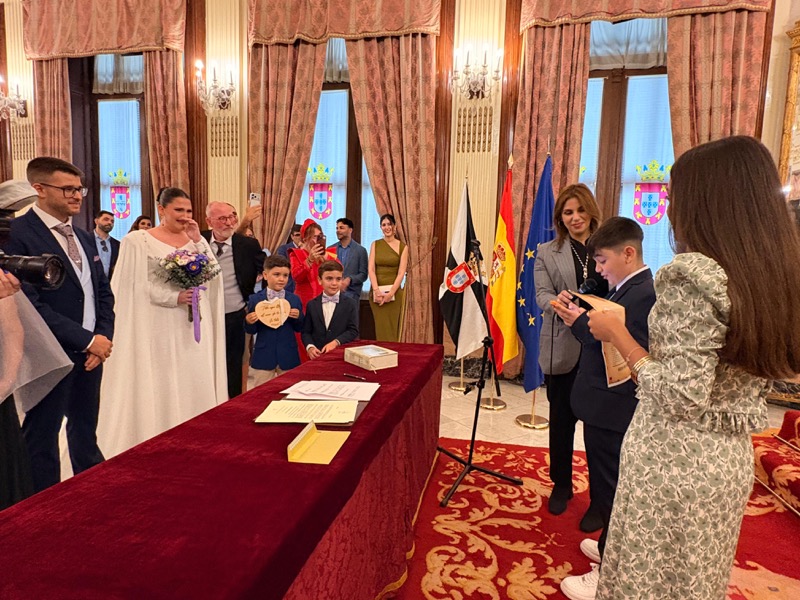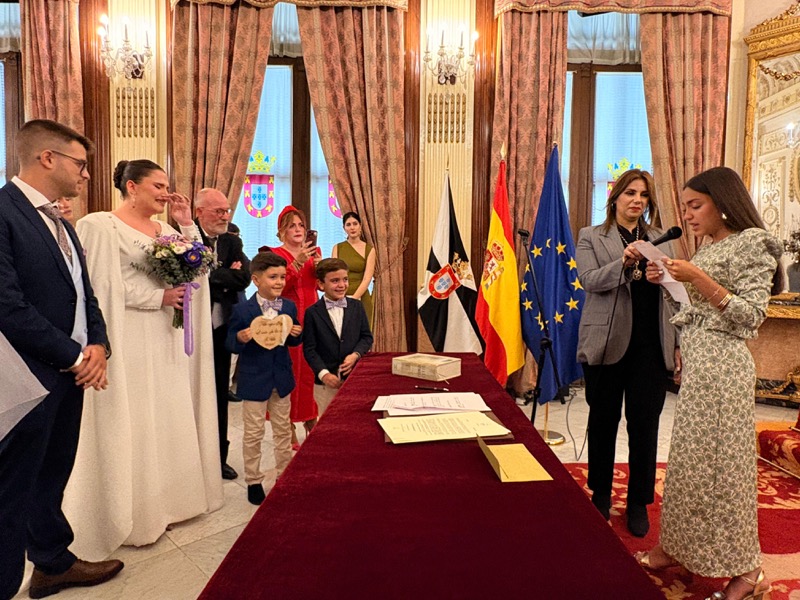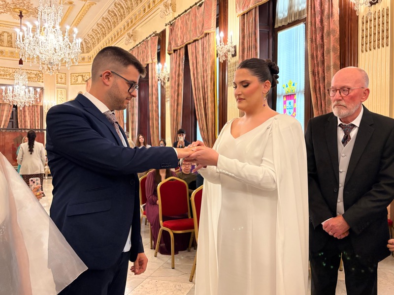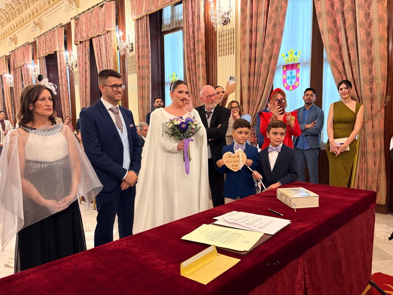 El salón del trono del Ayuntamiento ha acogido este sábado en Ceuta la boda de Sergio y Ángela. Los ha casado la consejera de Sanidad, Nabila Benzina.