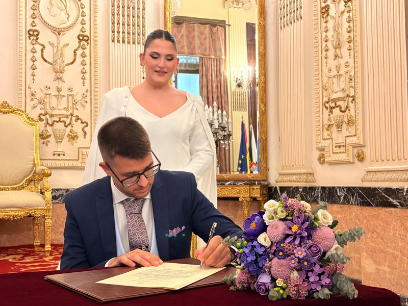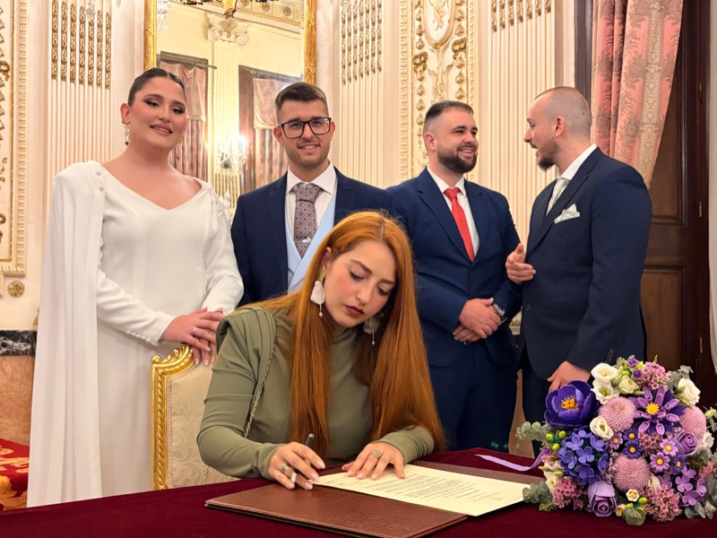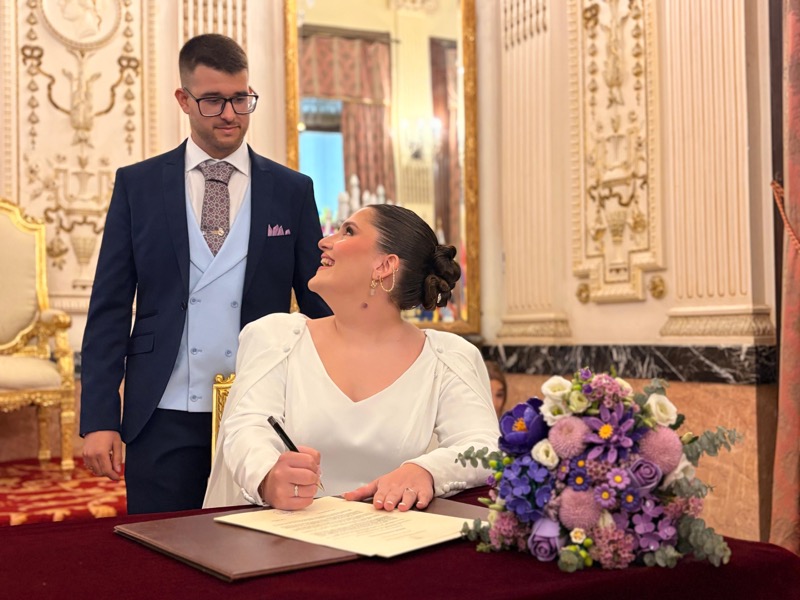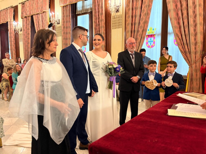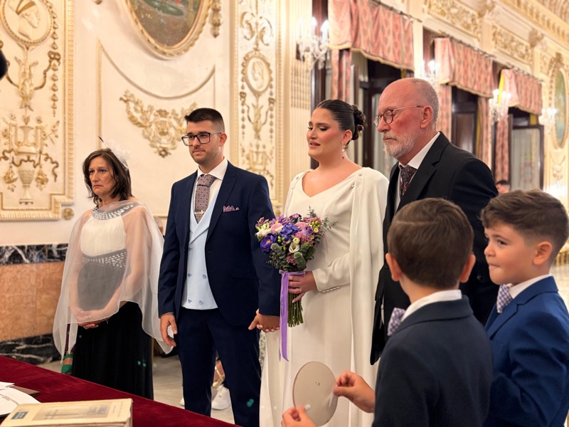 Junto a ellos han estado amigos y familiares para acompañarlos en un día muy especial, en este ecuador del mes de abril de 2026. Hoy ha triunfado el amor en el Ayuntamiento de nuestra ciudad, en un lugar tan cuidado como es el salón del trono, que ha sido testigo de tantos enlaces y jornadas preciosas dominadas por el amor.