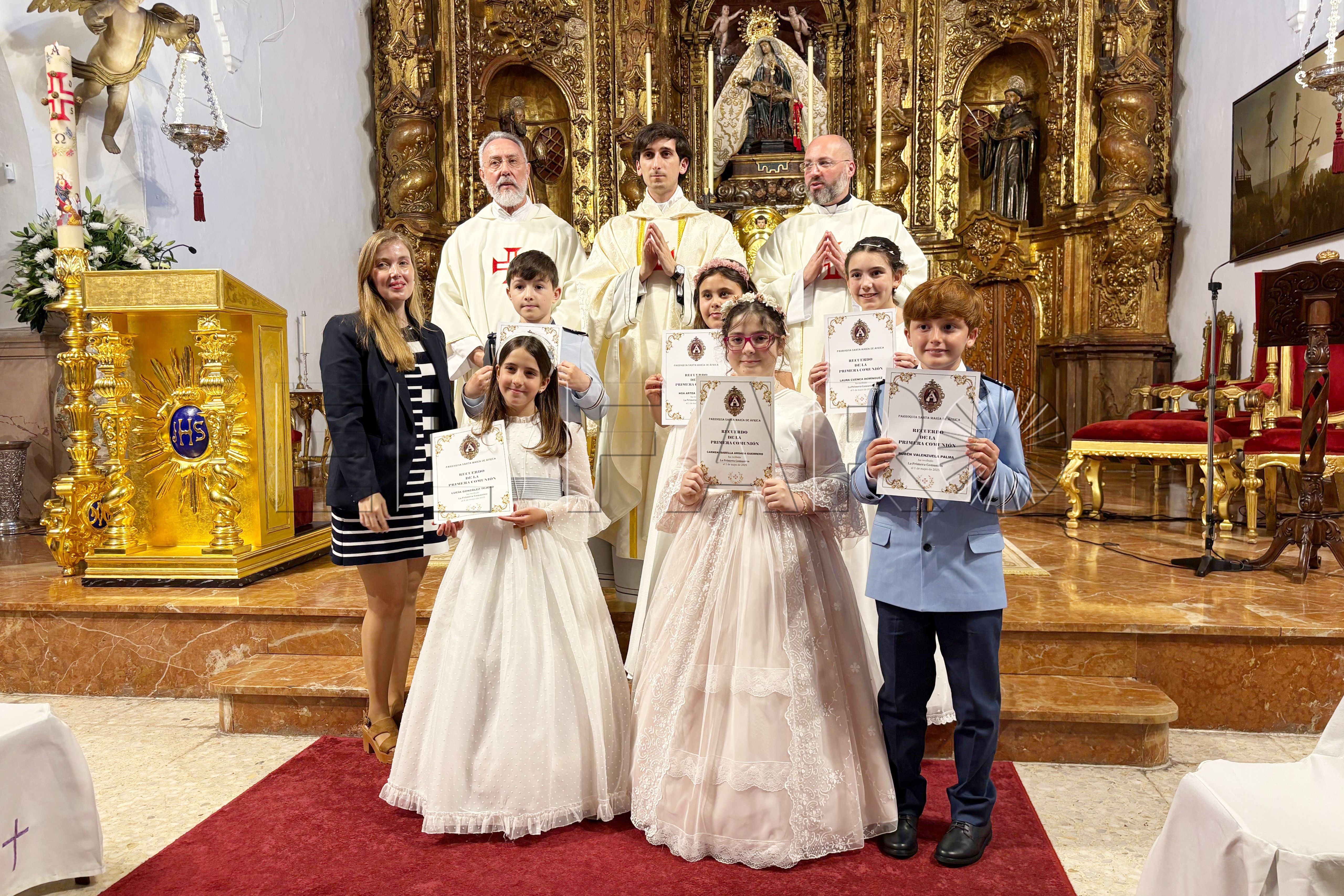 Se llaman Martín, Lucía, Carmen Isabela, Laura, Rubén y Noa. Este grupo ha recibido la Primera Comunión en Ceuta este jueves, Primero de Mayo, en la iglesia de África en el turno de las 13:00 horas.
