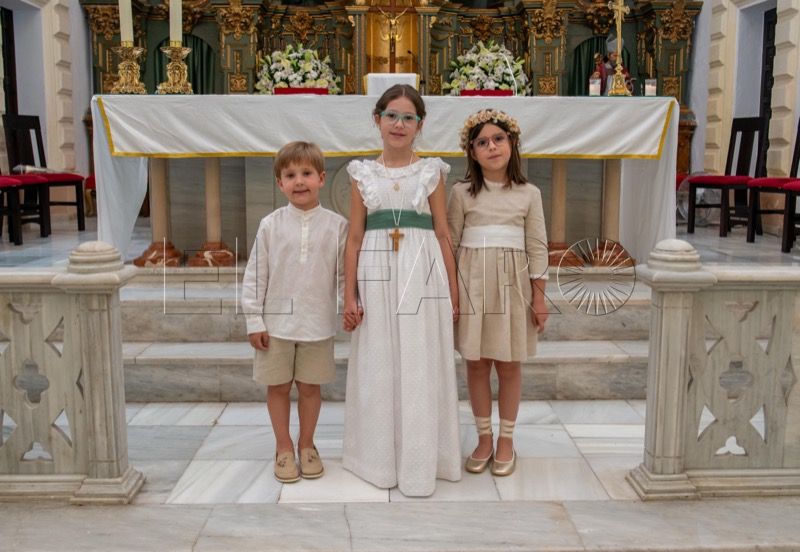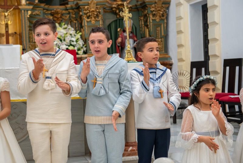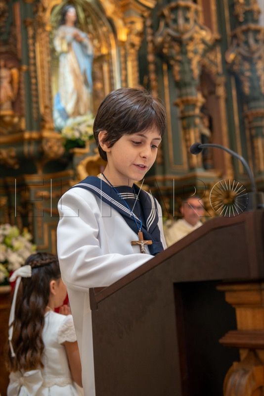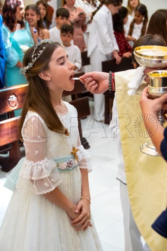 Primero han sido los pequeños del turno de las 11:00 horas los que tras su preparación en catequesis han hecho su Primera Comunión, bajo la mirada protectora de todos aquellos que se han dado cita en la parroquia: padres, madres, abuelos y abuelas, hermanos y hermanas, todos felices por ser parte de este día.