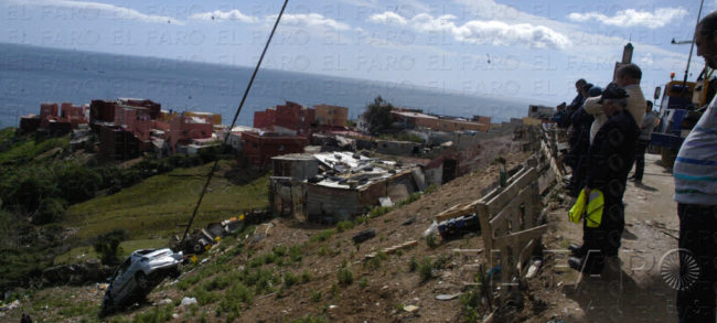 El accidentado, que se encontraba en perfecto estado, “solamente con un dolor en la espalda y en la pierna”, presenciaba el desarrollo de los trabajos junto a sus compañeros del Plan de Empleo, quienes un día antes se llevaron un gran susto al ver caer el vehículo por el barranco. Entre ellos estaba precisamente el trabajador que lo sacó del amasijo de hierros en el que quedó reducido el turismo. Contó a este medio su experiencia: “Cuando vi que se había precipitado monte abajo corrí hacia el coche y me encontré en el suelo su chaqueta, por lo que me asusté mucho, creí que estaba muerto. Llegué al coche y vi que estaba en el interior y estaba bien, muy asustado pero bien. Le desenganché el pie del acelerador y lo subí”, explicó. El accidentado y sus compañeros inspeccionaron el vehículo para ver si podían aprovechar algo, “quizás el motor”, dijo. El coche había quedado destrozado y había perdido piezas, como unas baterías. Eso sí, la clave para que se salvara fue que la zona del conductor estaba intacta. “Suerte que a mi parte no le pasó nada”, añadió.