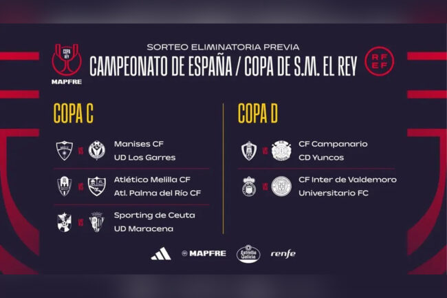 En la Copa C: el Manises CF se enfrentará al UD Los Garres, el Atlético Melilla CF al Atlético Palma del Río CF y el Sporting de Ceuta ante la UD Macarena.