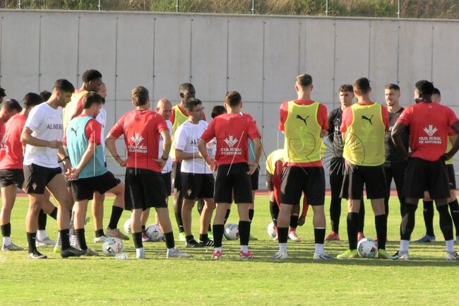 Asier Garitano, entrenador del Sporting de Gijón dio comienzo la sesión vespertina en las pistas de Loma Margarita con una charla motivacional a sus futbolistas. Unos quince minutos les tuvo el técnico vasco reunidos a los jugadores en el círculo central para explicarles todos los detalles del partido de este sábado en el ‘Alfonso Murube’.