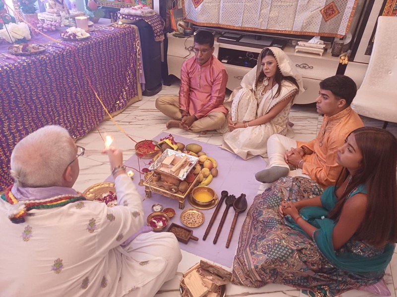 Asimismo, ha dejado saber que “esta compleja ceremonia debe de ser oficiada por un puróhita o sacerdote experto en los rituales, recitación de mantras y el proceso de adoración a la deidad (archanam)”.