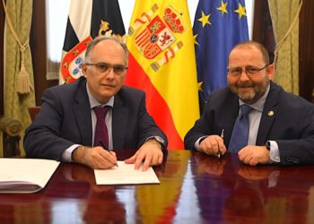 El consejero de Sanidad, Consumo y Gobernación, Alberto Gaitán, y el presidente del Colegio Oficial de Veterinarios de Ceuta, Francisco ...