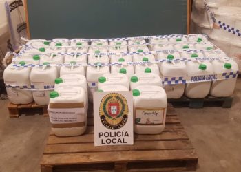 Efectivos de la Policía Local han incautado 840 litros de productos fitosanitarios que encontraron tras realizar pesquisas en un aparcamiento ...