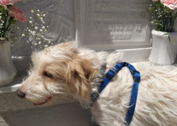 Babu, el perro fiel que siempre se detiene ante el nicho de su dueño