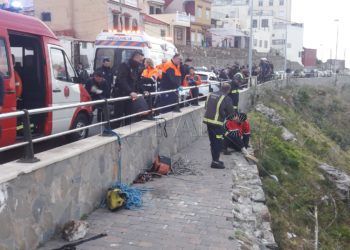 Los Bomberos han rescatado a una persona que se ha precipitado por un barranco en el Recinto, en Ceuta. Se ...