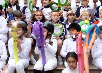 Alumnos y profesores del colegio Mare Nostrum participaron en un original pasacalles con disfraces alusivos a los populares emoticonos del ...