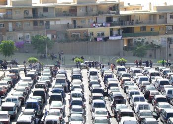 Pitidos a modo de reivindicación por parte de los conductores que, un día más, han quedado atrapados por las colas ...