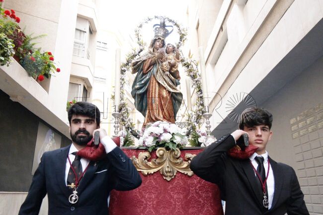 Incienso y rosarios en mano. Sin marchas y con humildad, un breve cortejo la ha llevado a flote por las…
