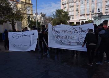 Medio centenar de inmigrantes argelinos residentes en el CETI de Ceuta han marchado en protesta hacia la Delegación del Gobierno ...