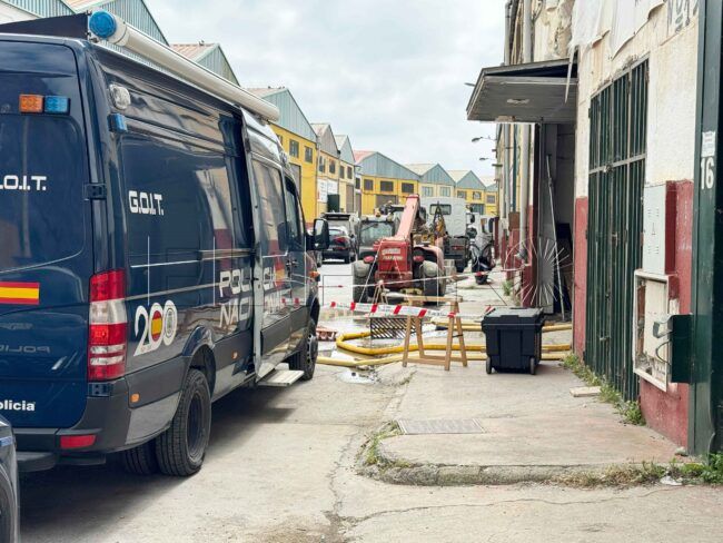 Agentes del GOIT, Grupo Operativo de Intervenciones Técnicas de la Policía Nacional, se encuentran en el interior de la nave…
