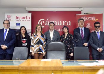 El director general de la Fundación ONCE, José Luis Martínez; la directora general de Inserta Empleo, Virginia Carcedo; y el ...