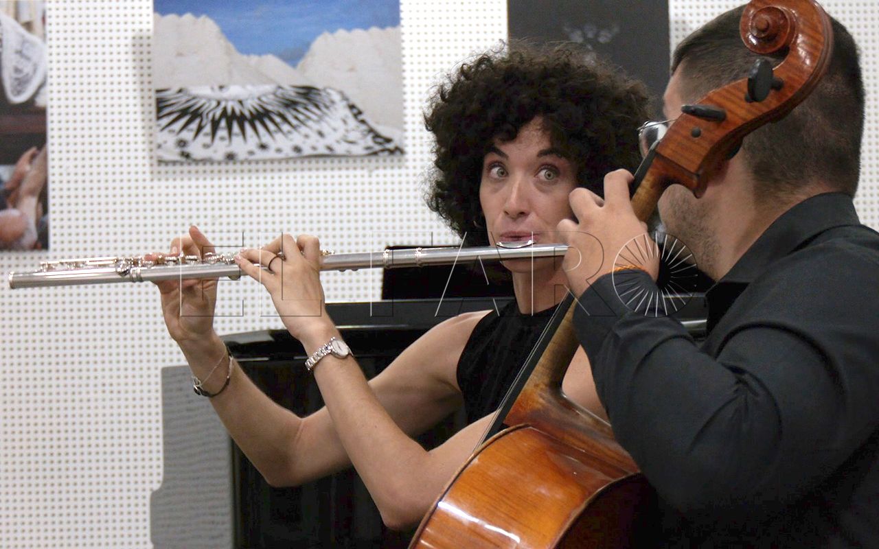 Notas que salen de una cuerda. Un leve piano que completa el tándem y que deleita al público con música ...