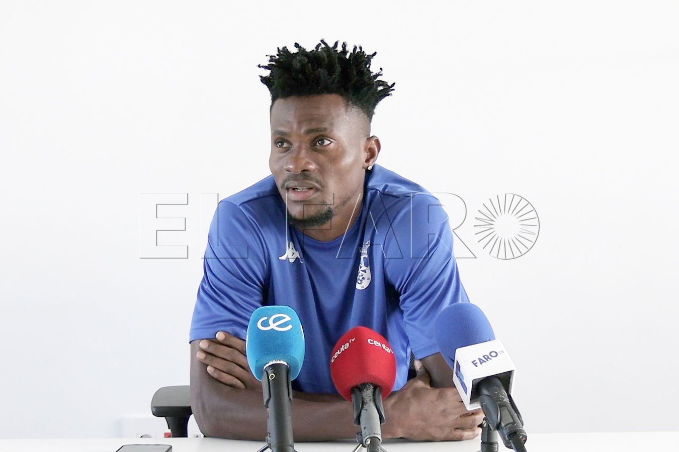 Saturday Erimuya, defensa de la Agrupación Deportiva Ceuta salió a hablar ante los medios de comunicación en la previa del ...