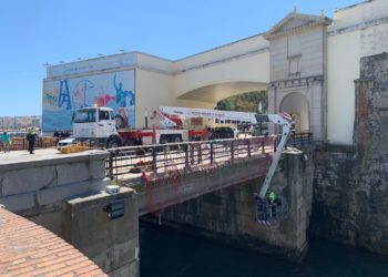 La malla de sujeción colocada debajo del puente del Cristo el 3 de agosto del año pasado, y que posteriormente ...