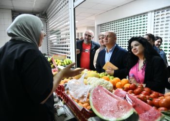 Tras una visita al Mercado de San José en la barriada Hadú, el secretario general y candidato del PSOE de ...