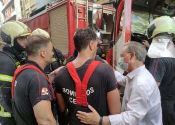 Los más de 50 bomberos que participaron en las horas más críticas del incendio del edificio de colores de Ceuta, las ...