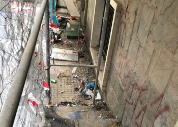 El abandono de una andamiaje de obra, junto a la céntrica Plaza de Correos, se ha convertido en una auténtica ...