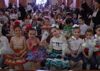 Los alumnos del colegio Lope de Vega han acudido a la iglesia de Los Remedios para realizar una ofrenda de ...