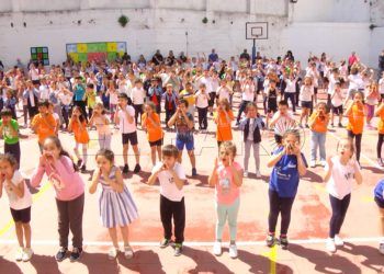 Los niños y niñas del CEIP Lope de Vega de Ceuta han participado este martes en una actividad de baile ...