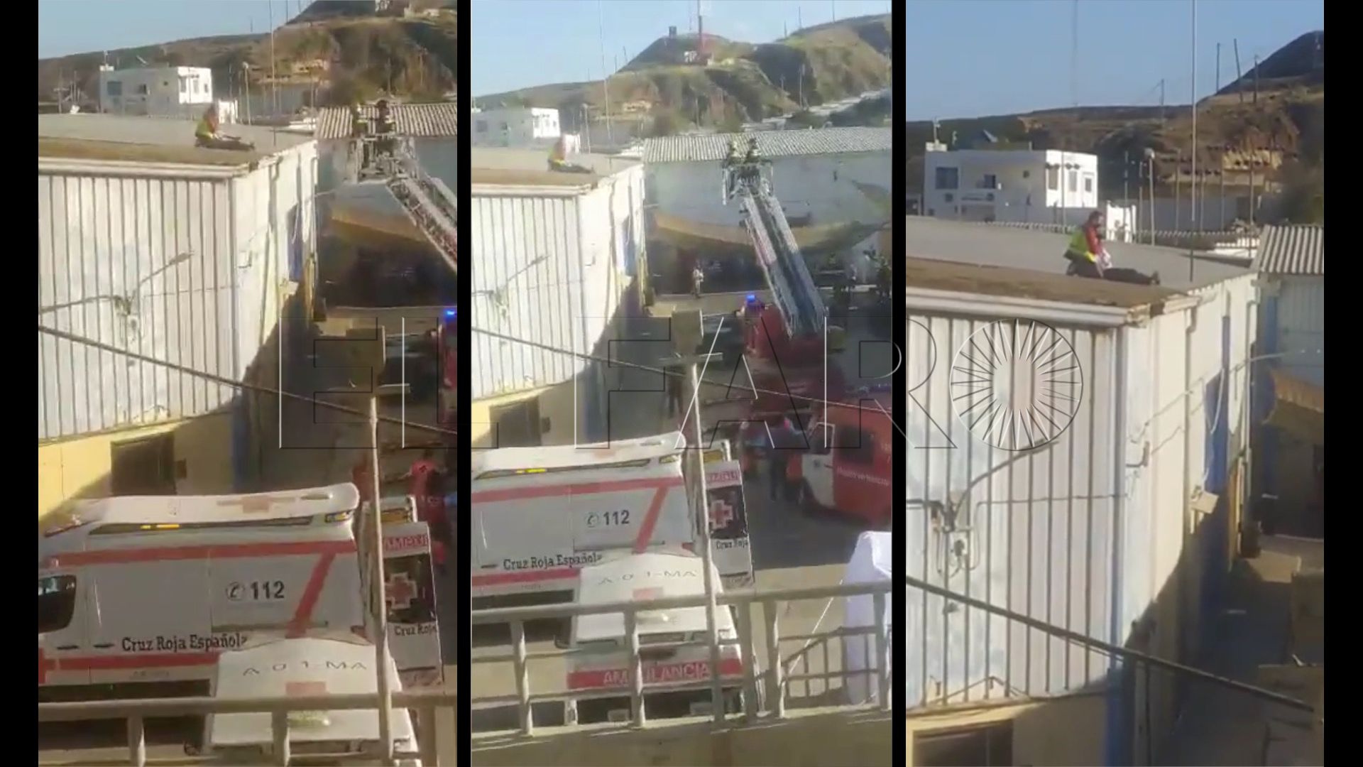 Bomberos ha tenido que intervenir esta tarde de domingo en las naves del Tarajal, después de que uno de los ...